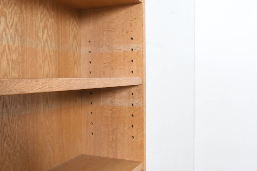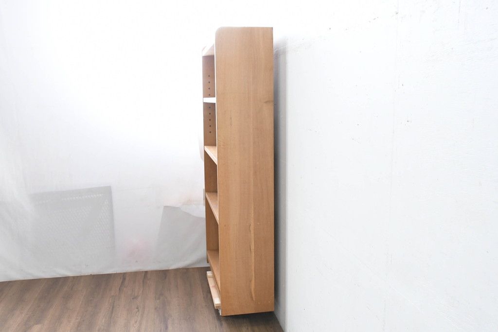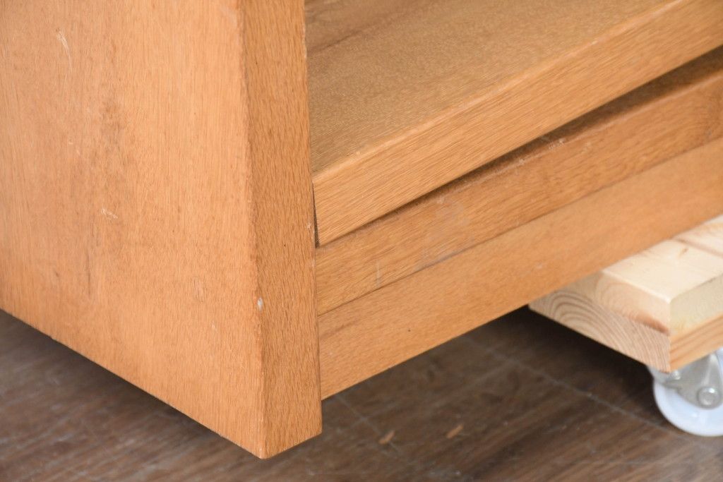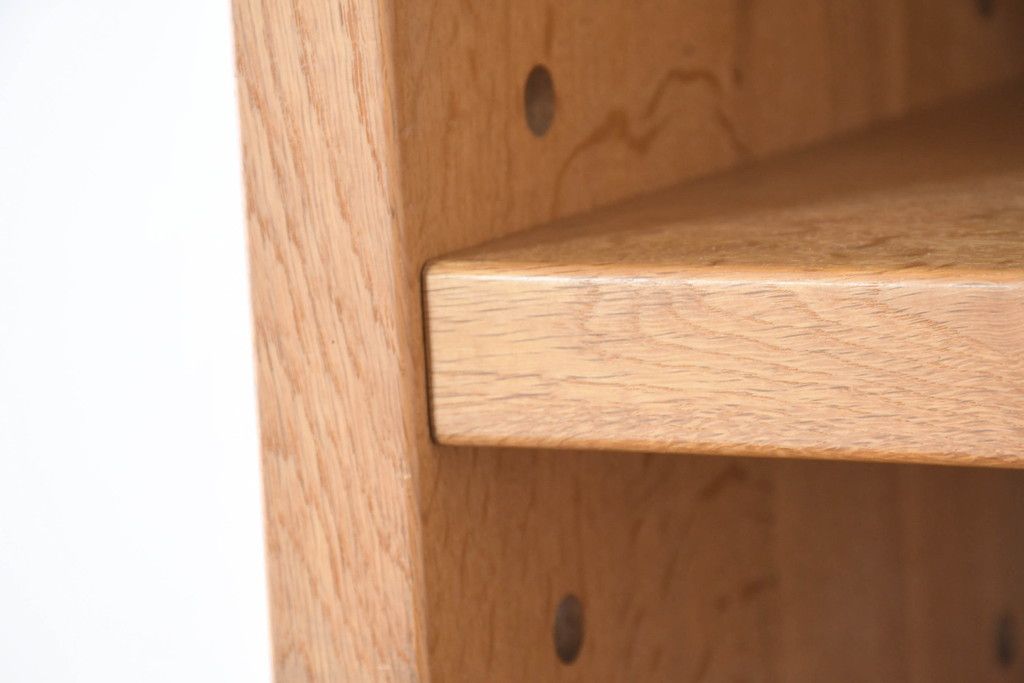 オープンラック・シェルフ> 本棚 > 中古 美品 重厚 国産職人手作り ぶ厚い楢(ナラ)材のシンプルな本棚(飾り棚、オープンシェルフ、ブックシェルフ、オープンラック、収納棚)(製作費約30万円)(R-083576)