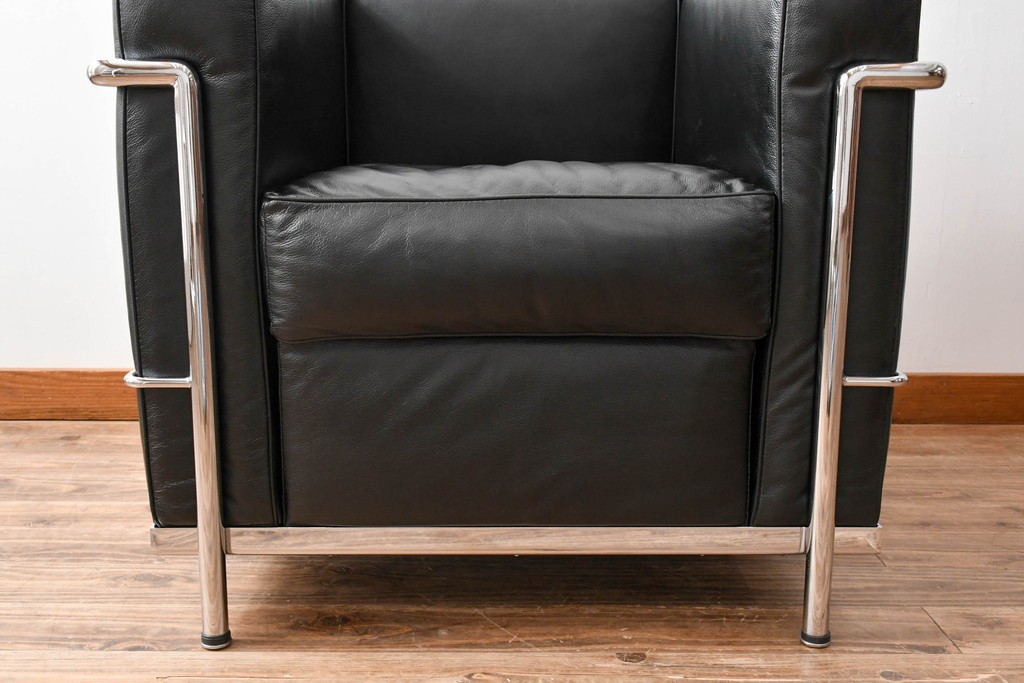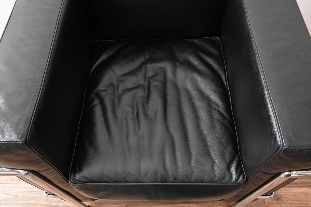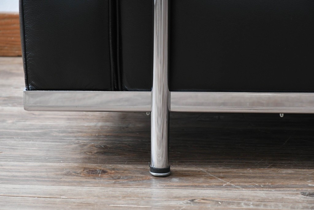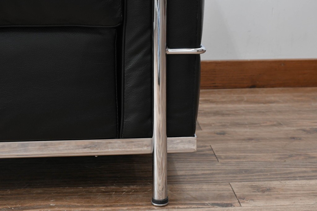 中古 美品 IDC大塚家具 ル・コルビュジエデザイン グランコンフォール LC2 端正な造形美が際立つスチールフレームの名作1人掛けソファ(レザーソファ、デザイナーズソファ) 定価約40万円相当 (R-083586)
