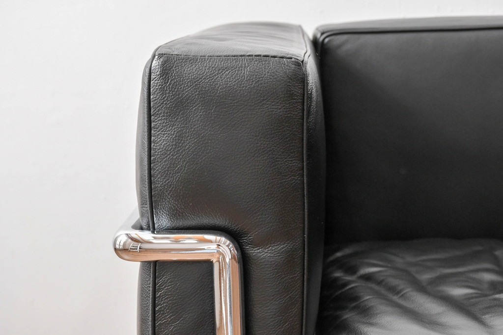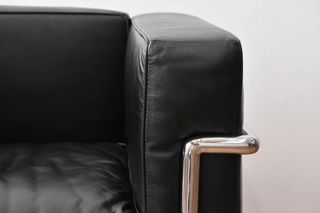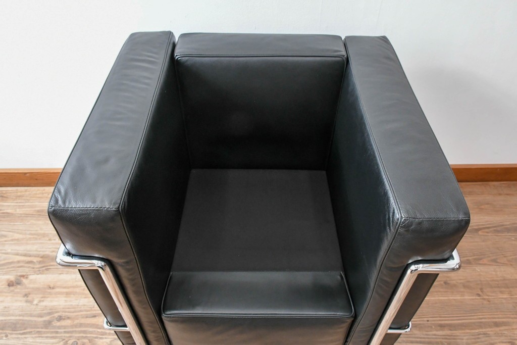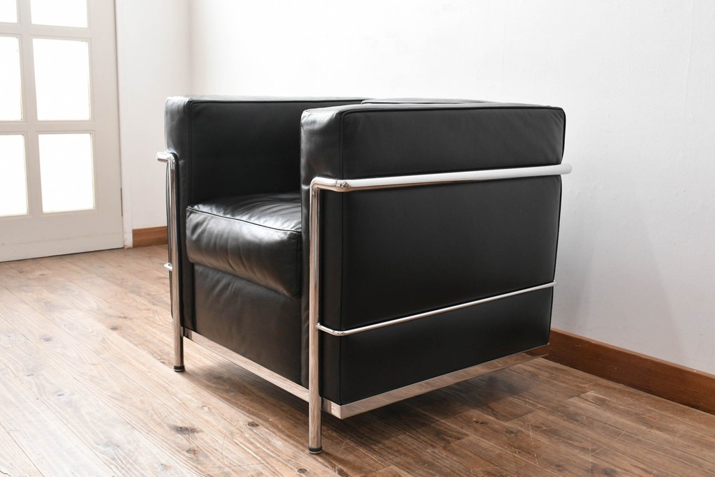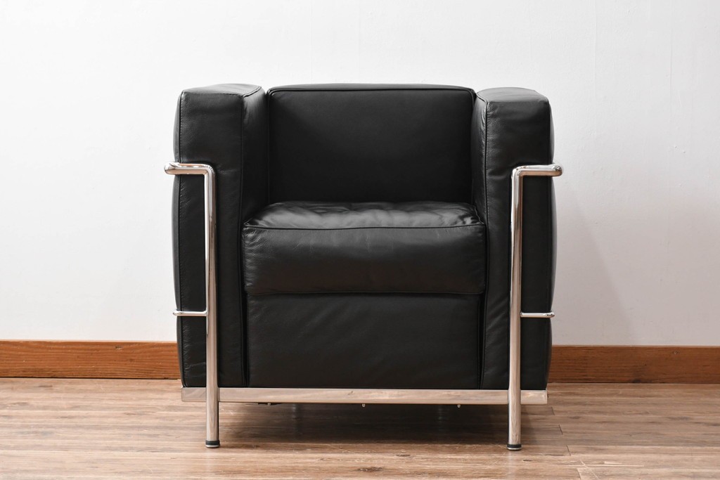 中古 美品 IDC大塚家具 ル・コルビュジエデザイン グランコンフォール LC2 端正な造形美が際立つスチールフレームの名作1人掛けソファ(レザーソファ、デザイナーズソファ) 定価約40万円相当 (R-083586)