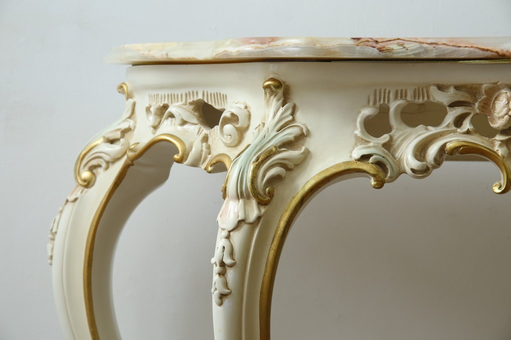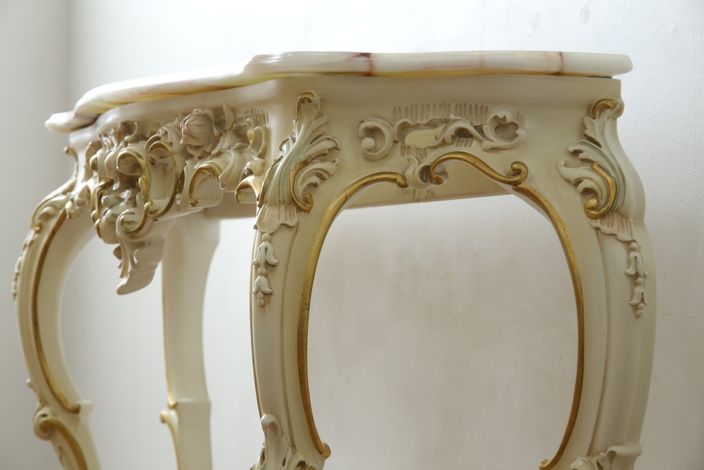 テーブル> コンソールテーブル > 中古 イタリア高級家具 シリック(SILIK) ロココ調 華やかな空間づくりにおすすめなサイドテーブル 定価約80万円相当 (R-083605)