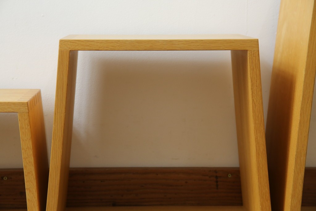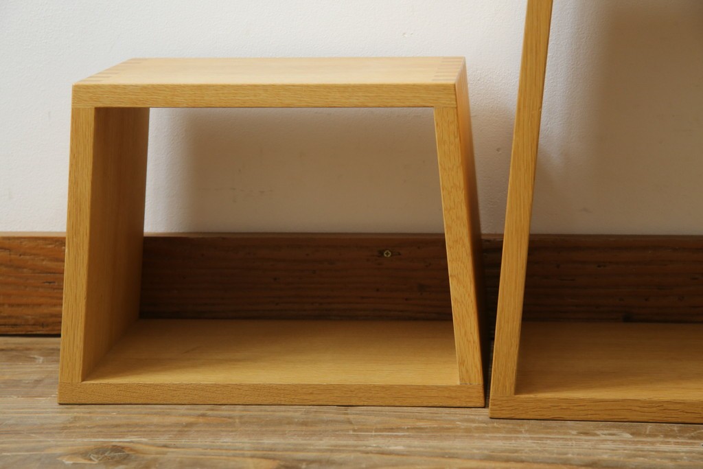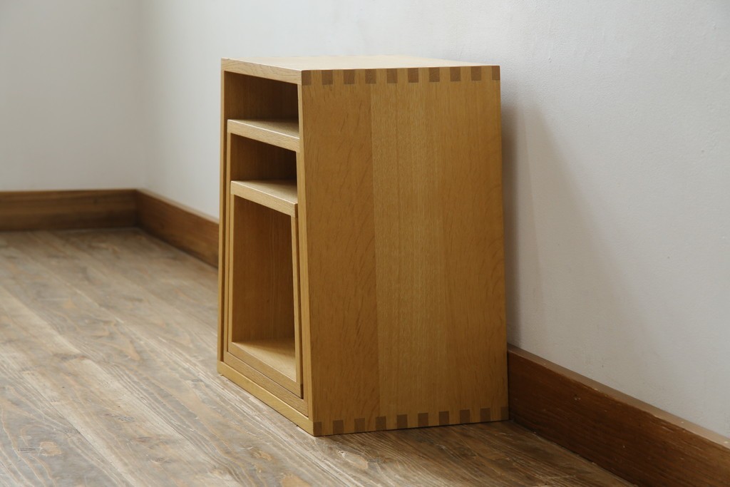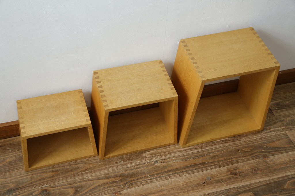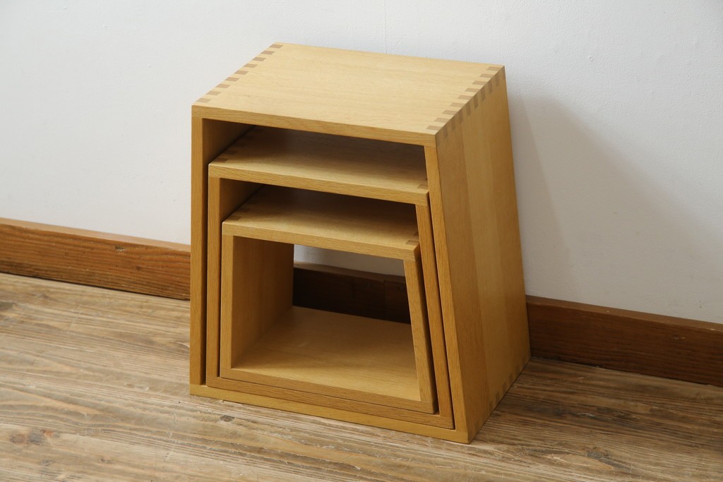 花台・飾り台 > 中古 美品 廃番の希少な楢(ナラ)材モデル 北海道家具ブランド cosine(コサイン) シンプルで機能的な3個組ネストスツール (R-083645)