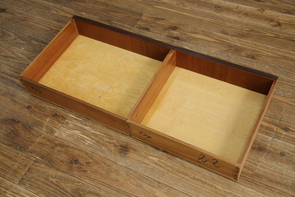 棚板は取り外しできます。棚板は各1枚あります。棚受けは3ヶ所、35mmピッチで調整できます。棚幅サイズのものが1枚の作りです。
