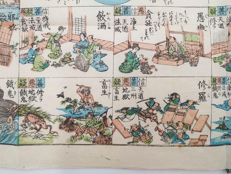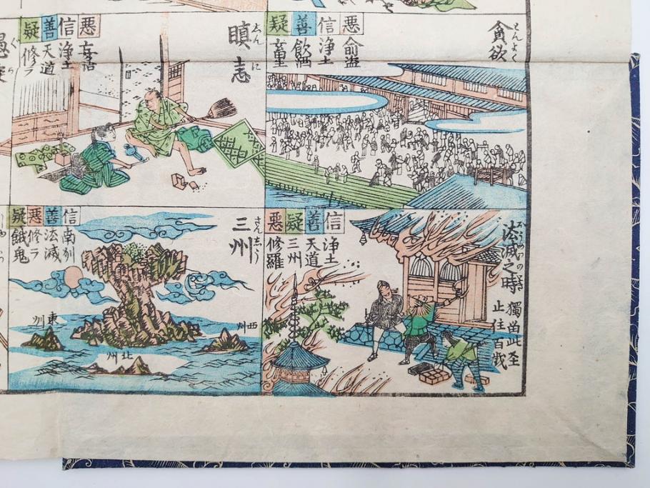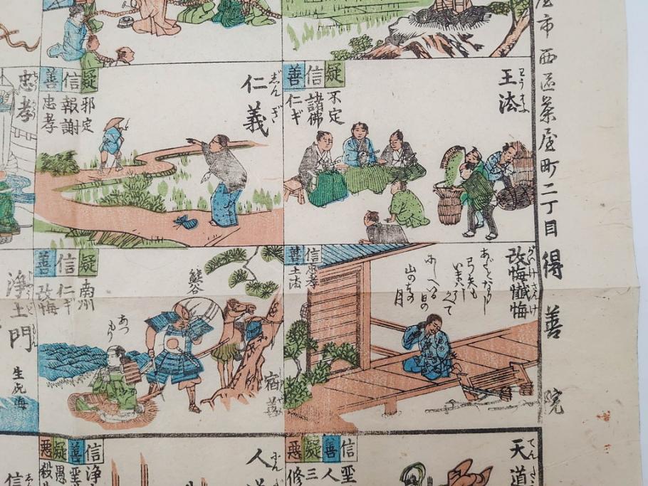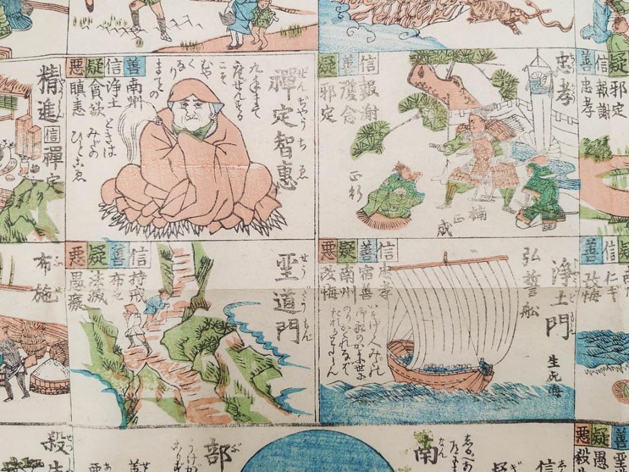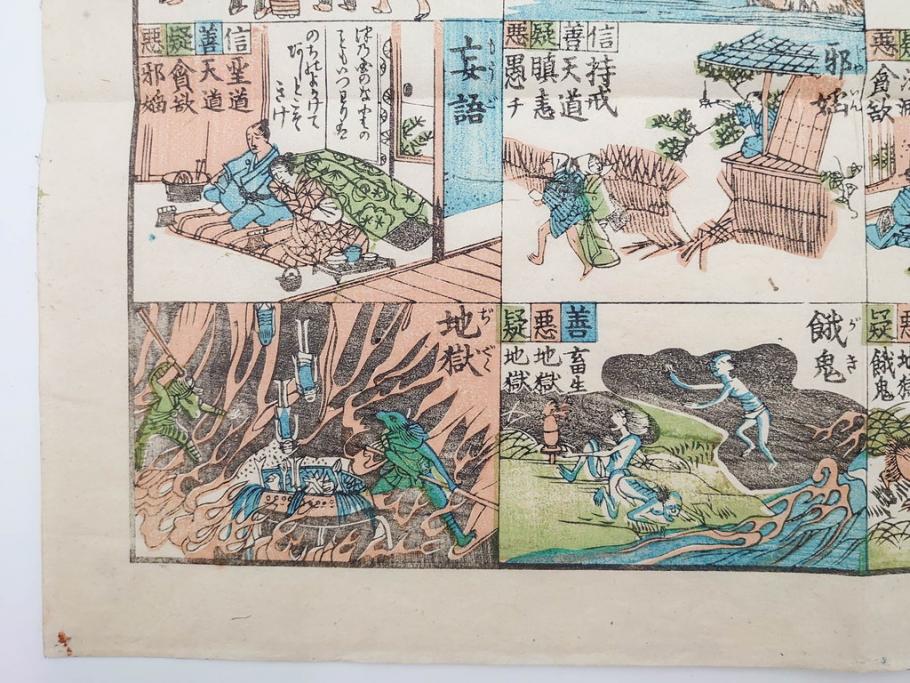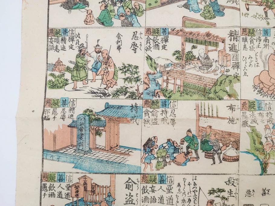 江戸期 善悪双六 極楽道中図絵 算柎 すごろく(木版画、仏教)(R-083685)
