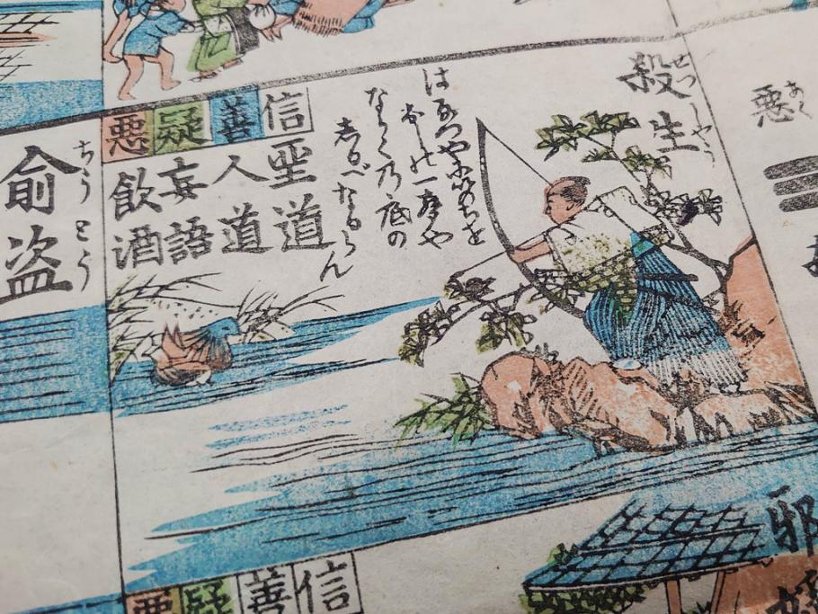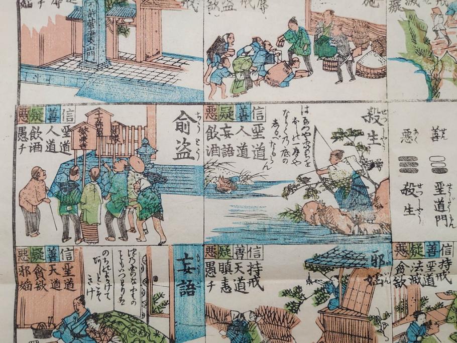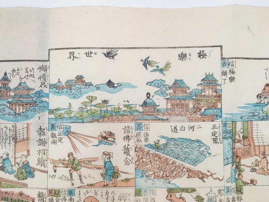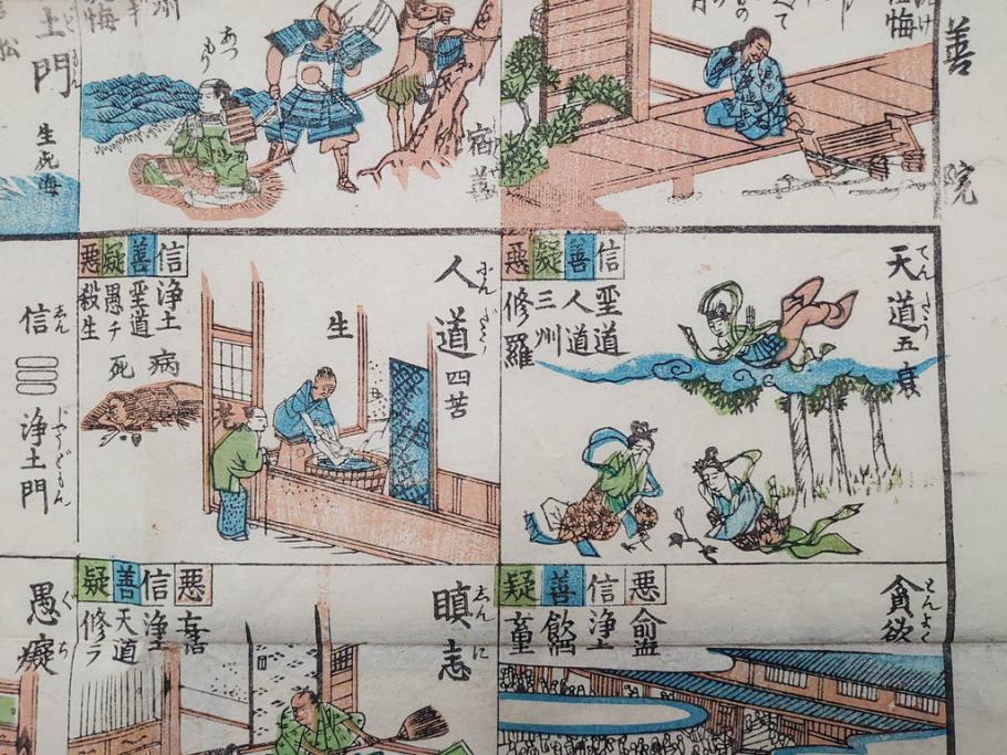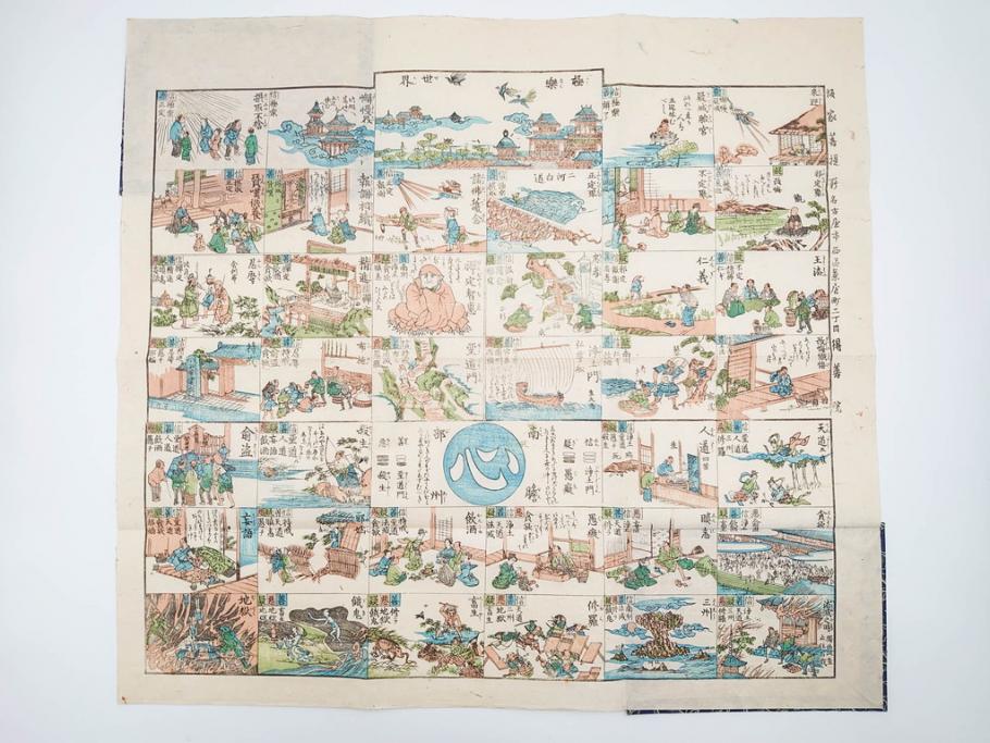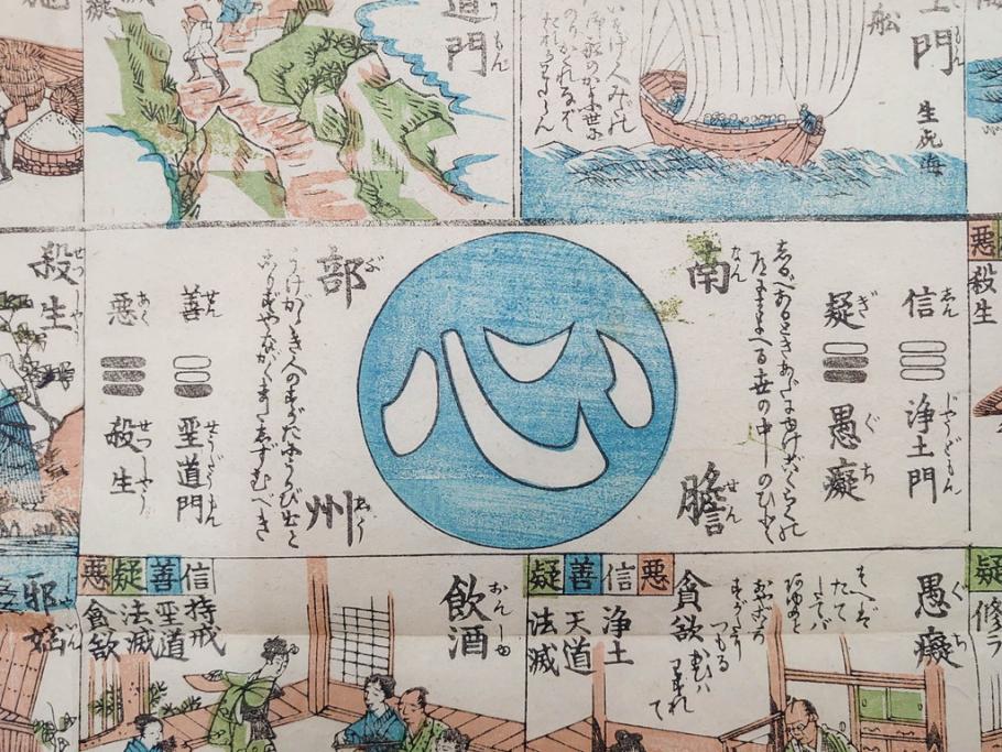 江戸期 善悪双六 極楽道中図絵 算柎 すごろく(木版画、仏教)(R-083685)