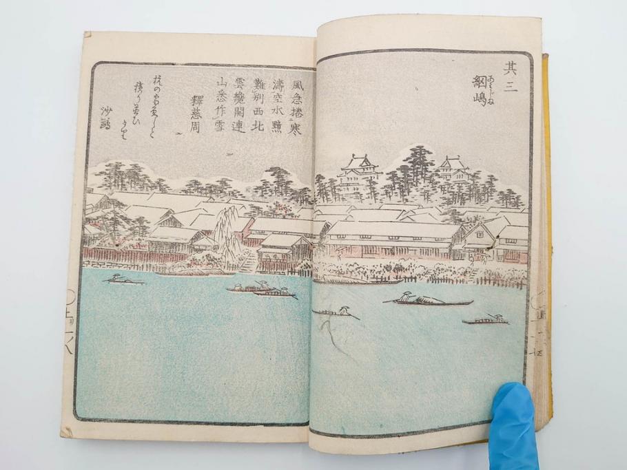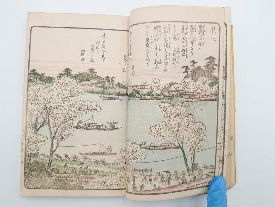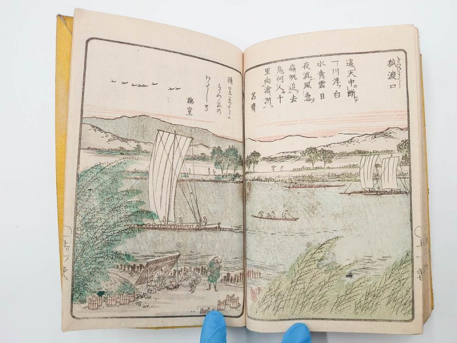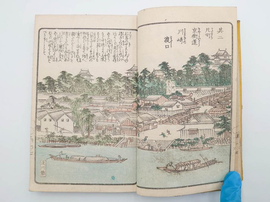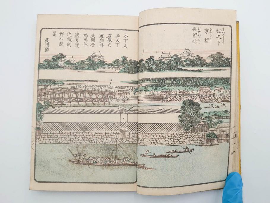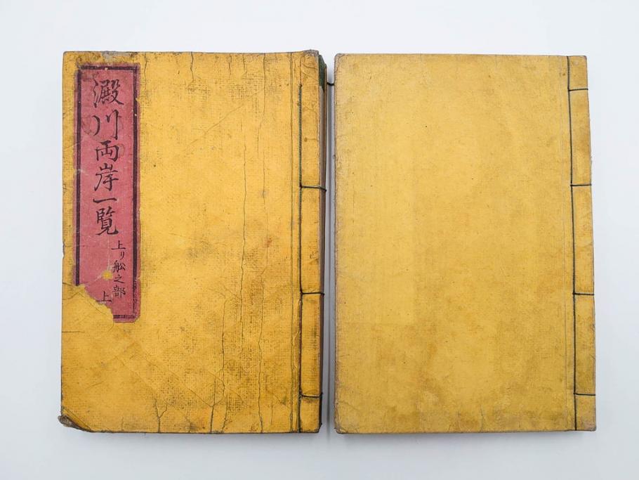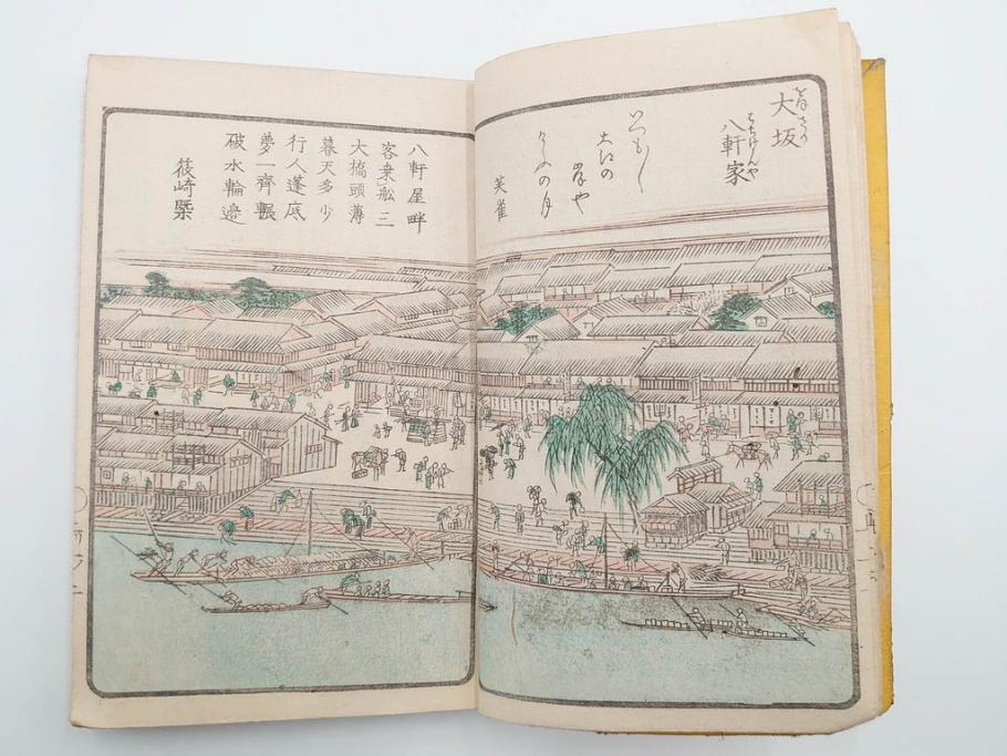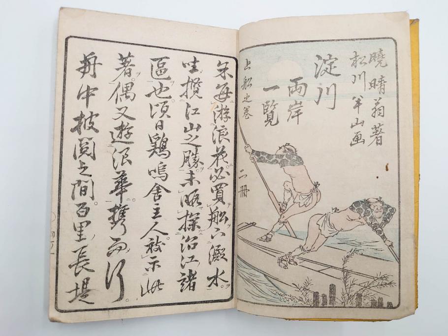 ラフジュ工房> 骨董・美術品> 日本画・洋画 > 江戸期 暁晴翁著 松川半山画 淀川両岸一覧 上り船の部 上下 2冊揃(木版画、地誌、古書、和本)(R-083687)