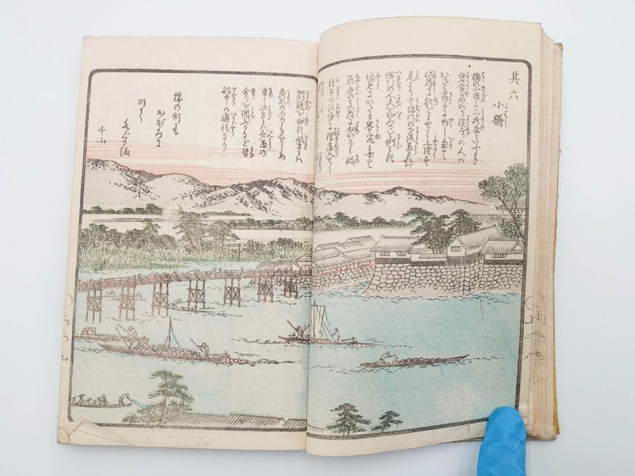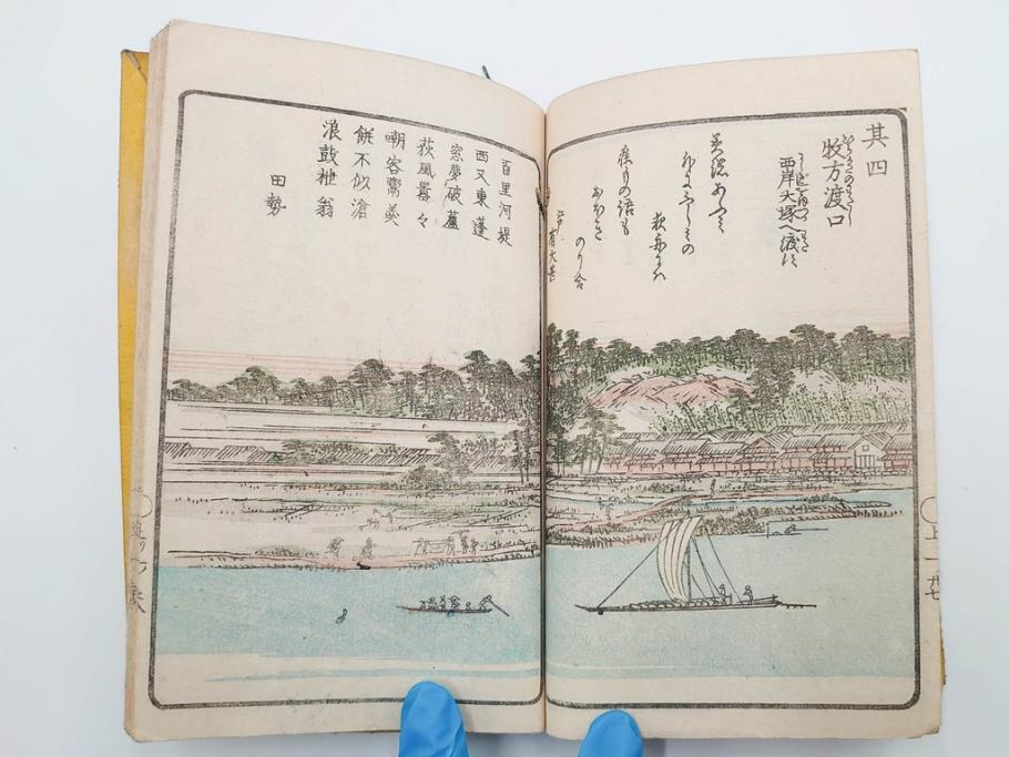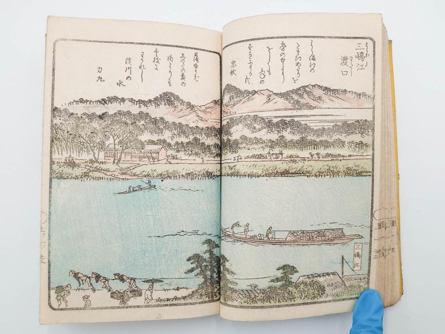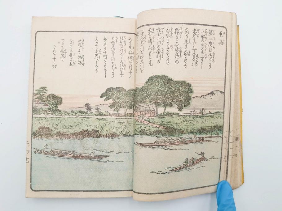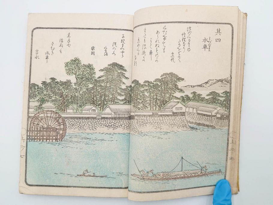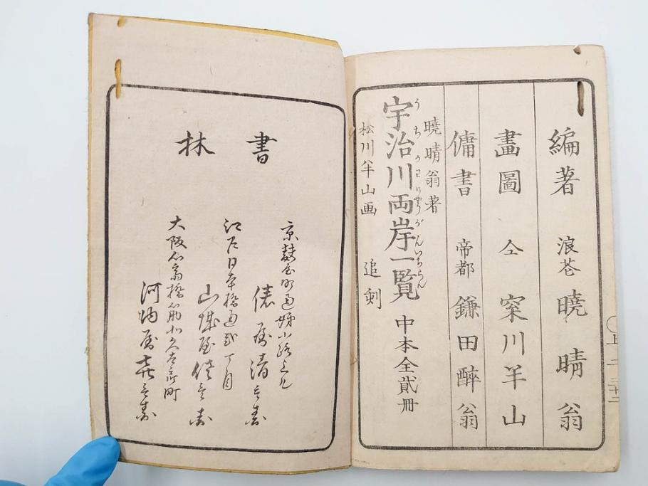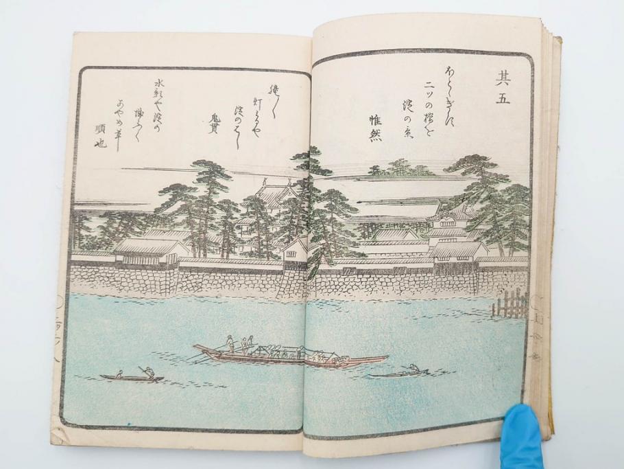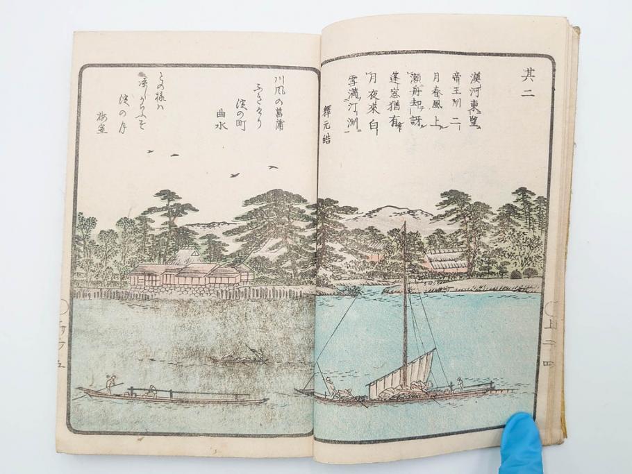 ラフジュ工房> 骨董・美術品> 日本画・洋画 > 江戸期 暁晴翁著 松川半山画 淀川両岸一覧 上り船の部 上下 2冊揃(木版画、地誌、古書、和本)(R-083687)