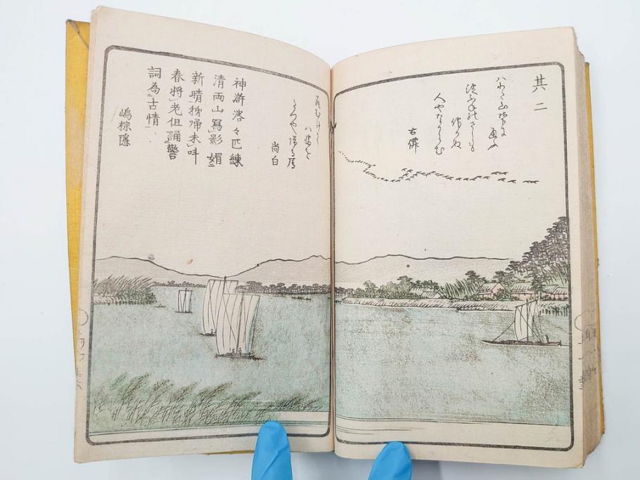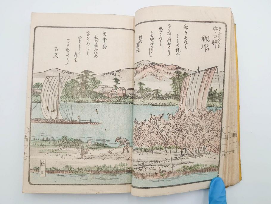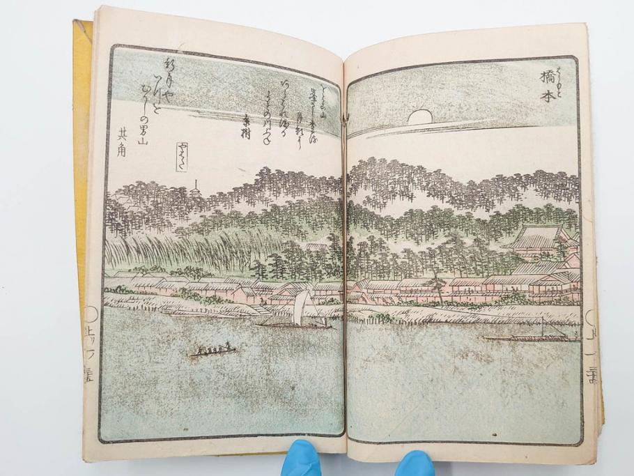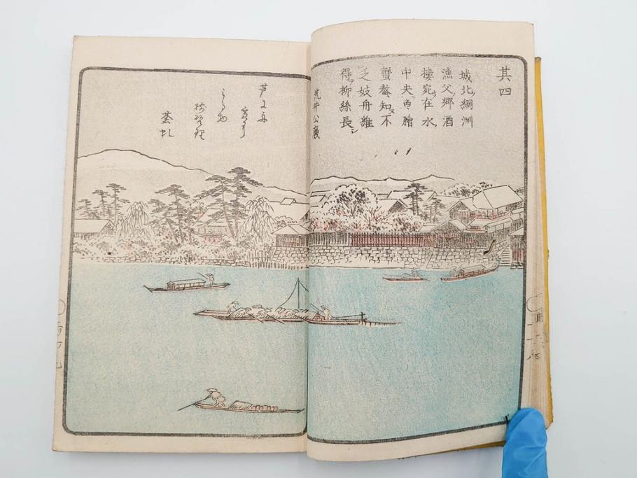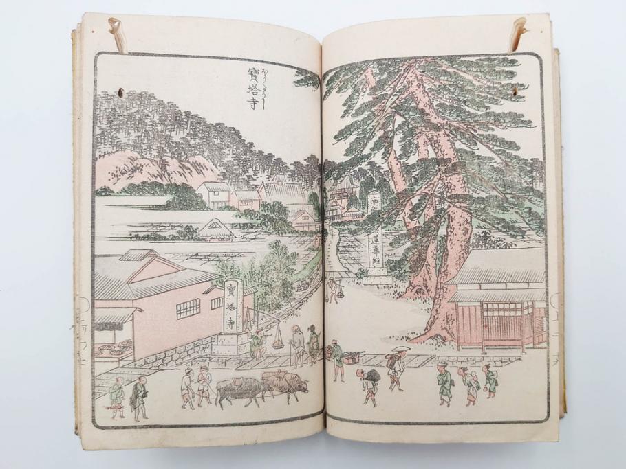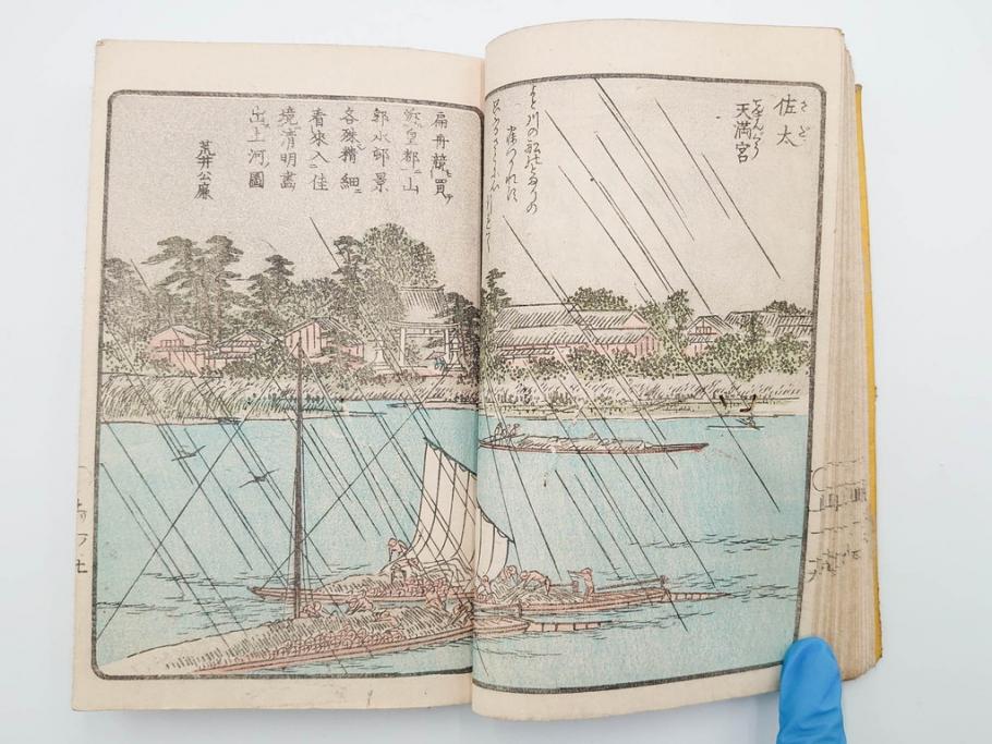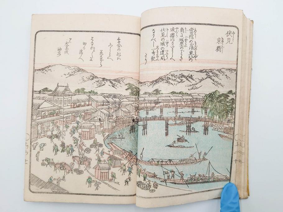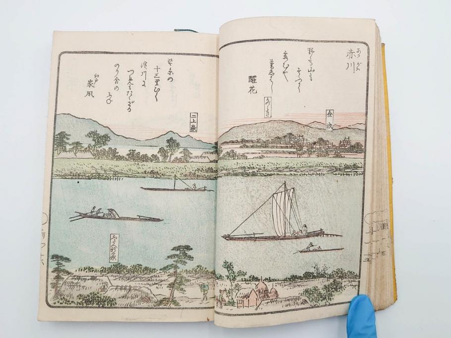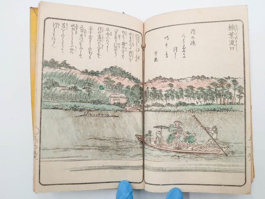 ラフジュ工房> 骨董・美術品> 日本画・洋画 > 江戸期 暁晴翁著 松川半山画 淀川両岸一覧 上り船の部 上下 2冊揃(木版画、地誌、古書、和本)(R-083687)