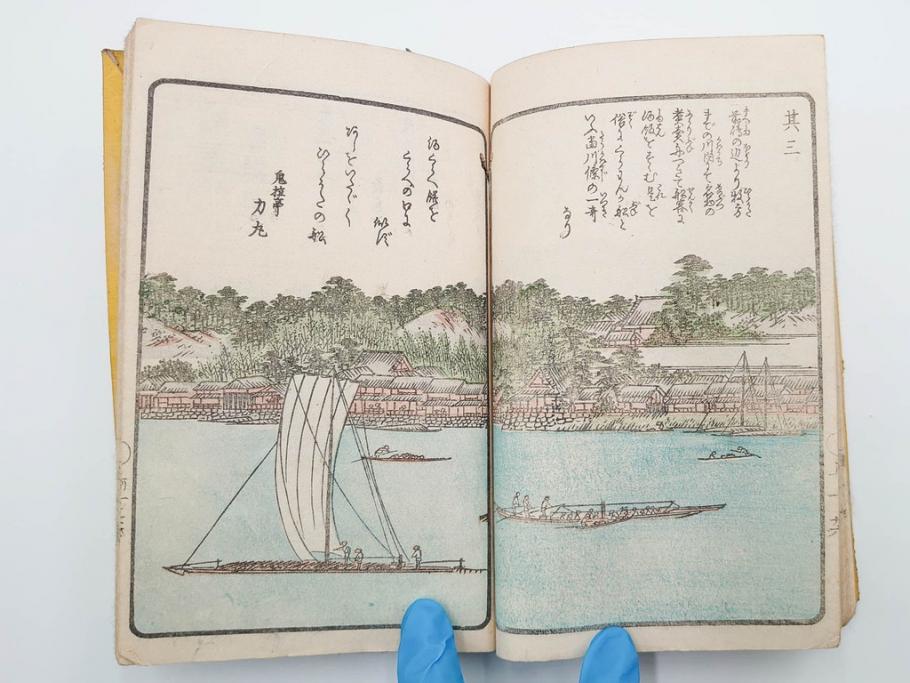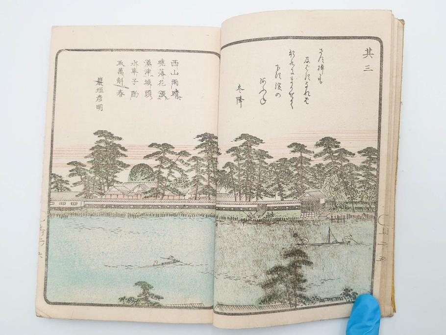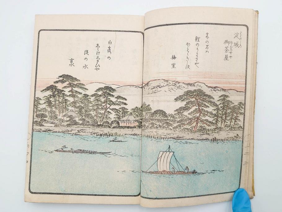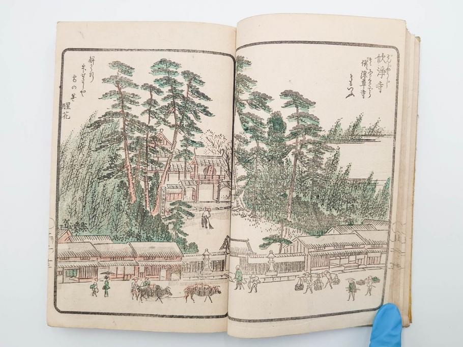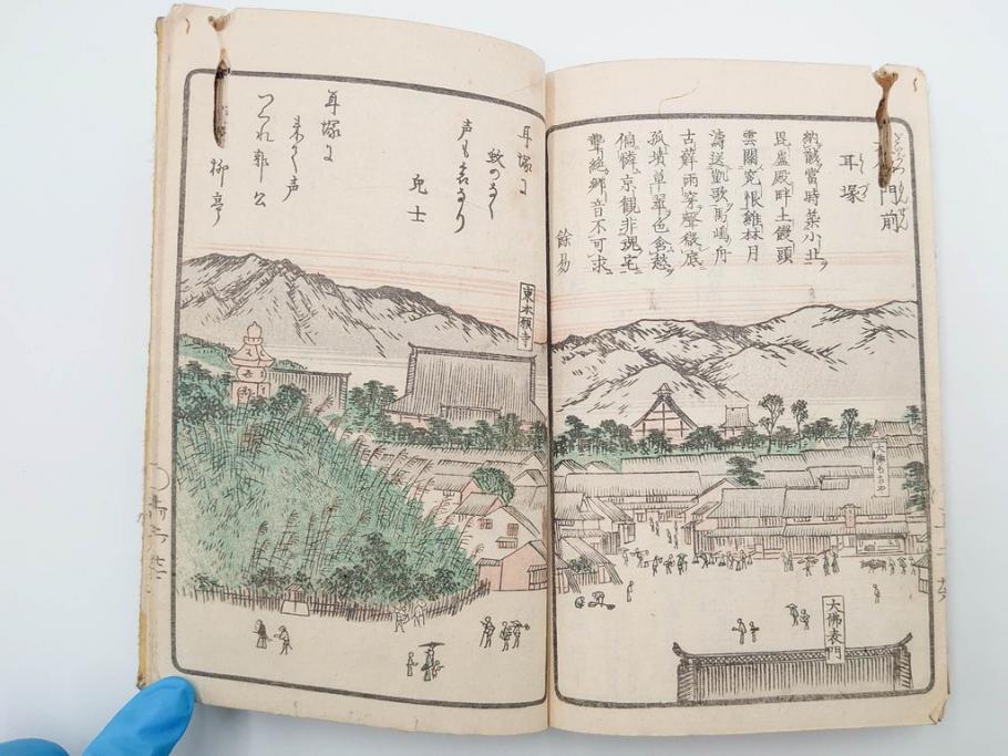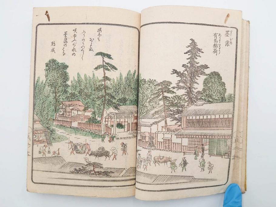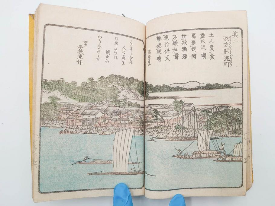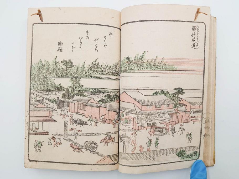 ラフジュ工房> 骨董・美術品> 日本画・洋画 > 江戸期 暁晴翁著 松川半山画 淀川両岸一覧 上り船の部 上下 2冊揃(木版画、地誌、古書、和本)(R-083687)