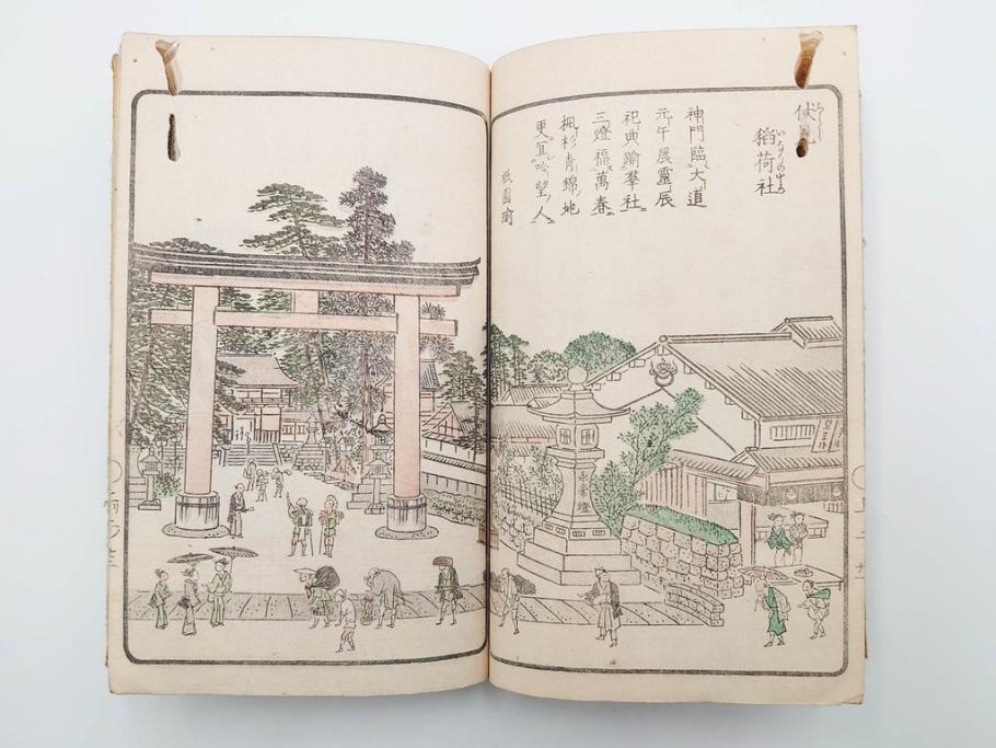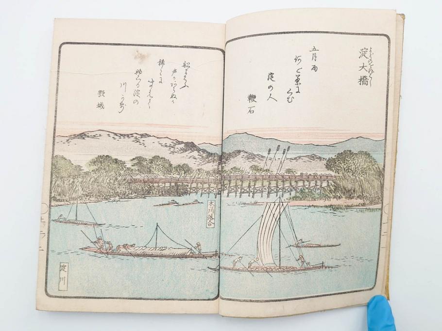 ラフジュ工房> 雑貨> 本・雑誌 > 江戸期 暁晴翁著 松川半山画 淀川両岸一覧 上り船の部 上下 2冊揃(木版画、地誌、古書、和本)(R-083687)
