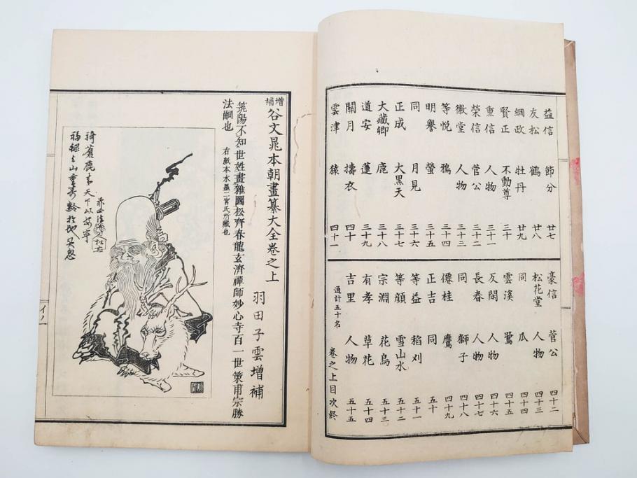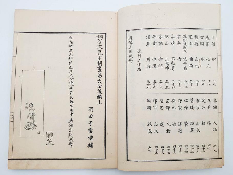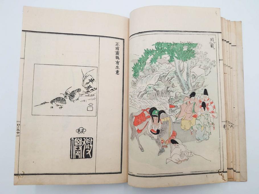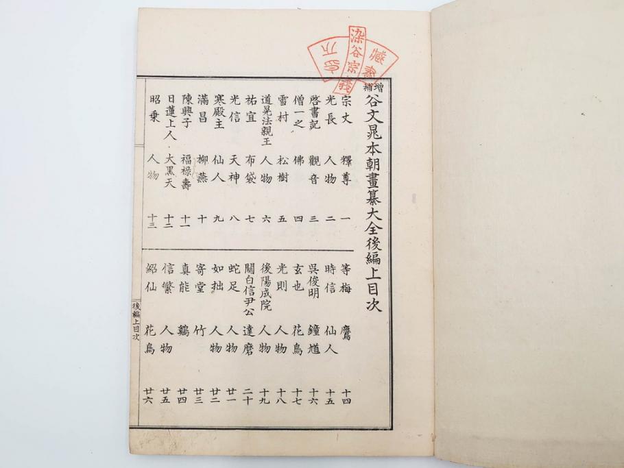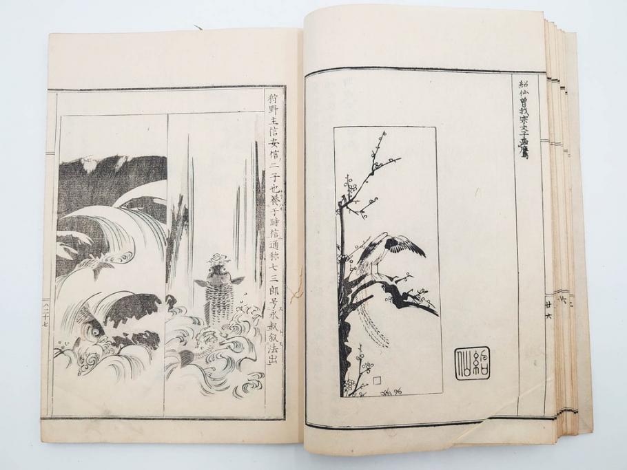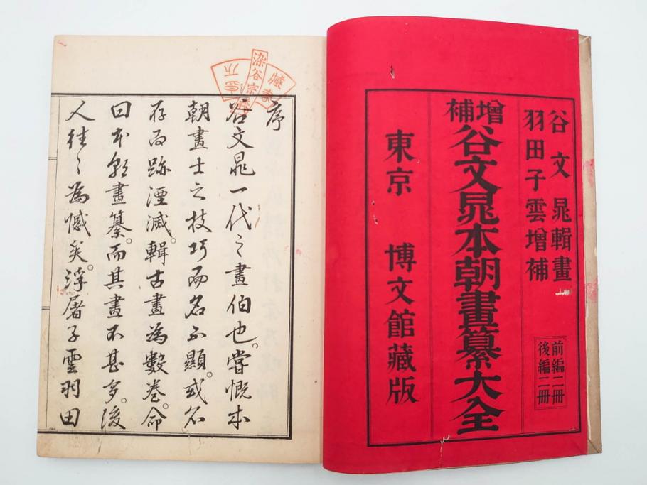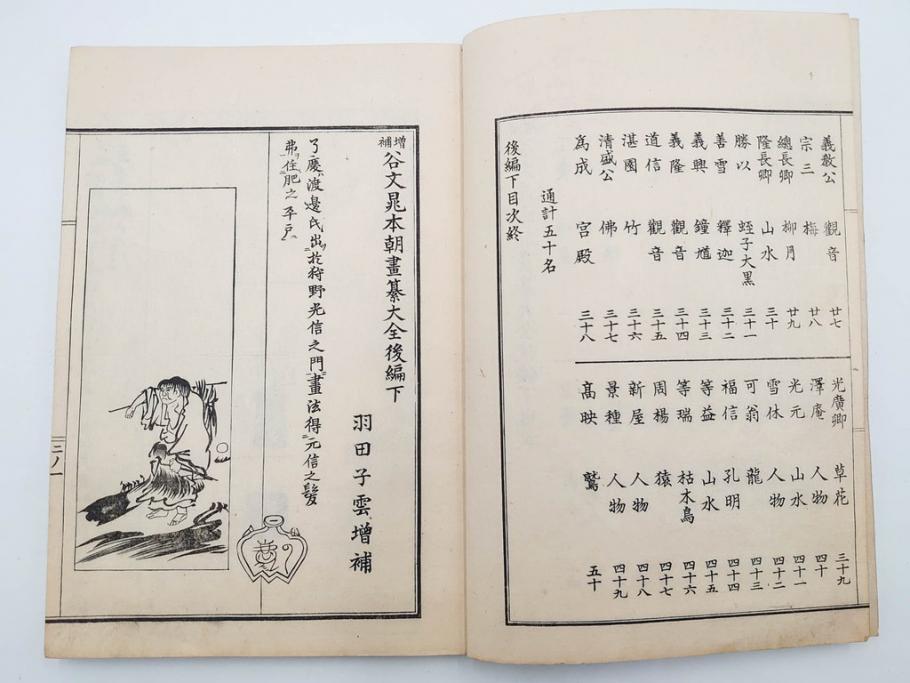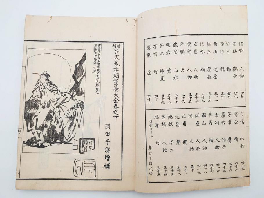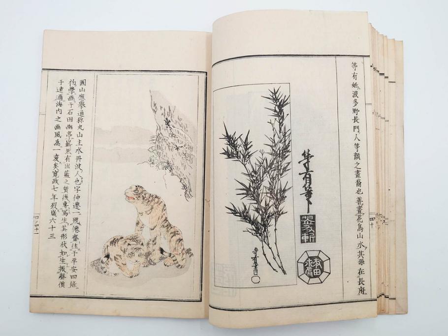 明治27年 増補 谷文晁本朝画纂大全 4冊揃(彩色木版画、古書、和本)(R-083690)