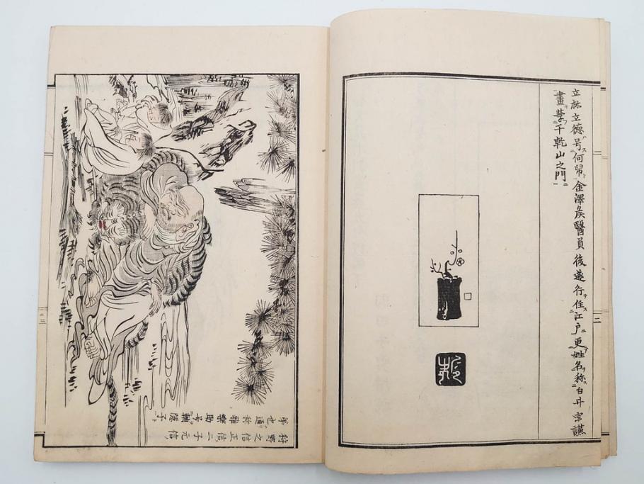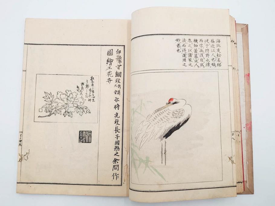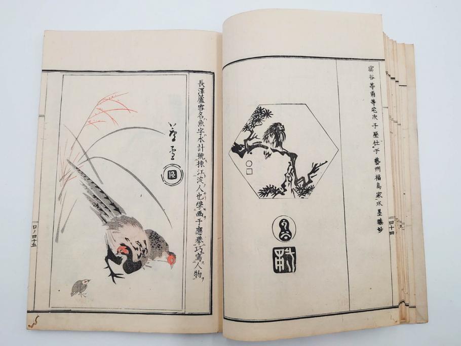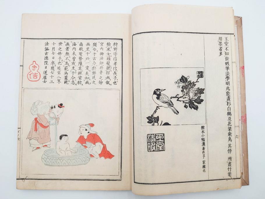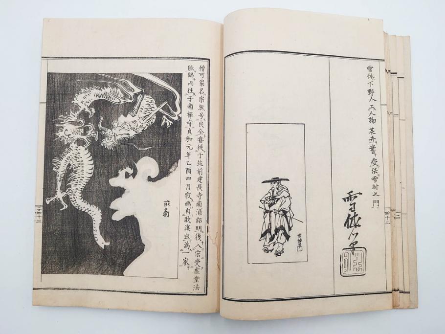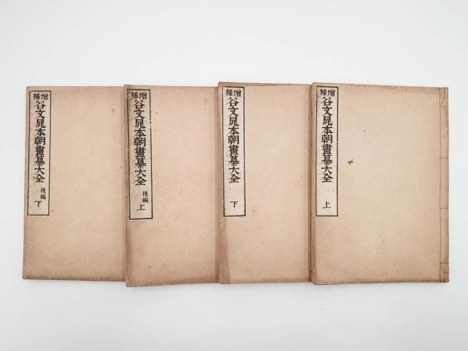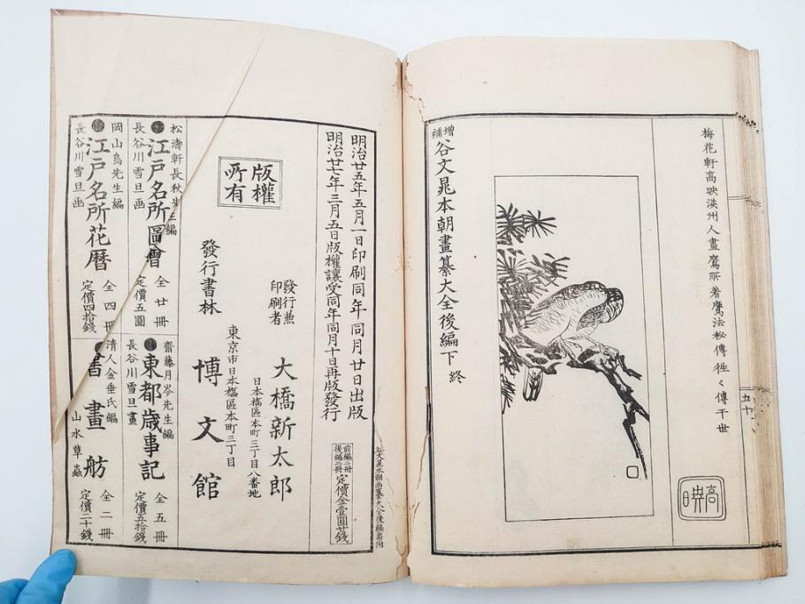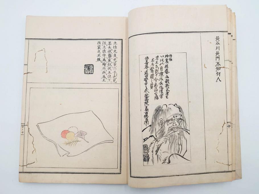 明治27年 増補 谷文晁本朝画纂大全 4冊揃(彩色木版画、古書、和本)(R-083690)