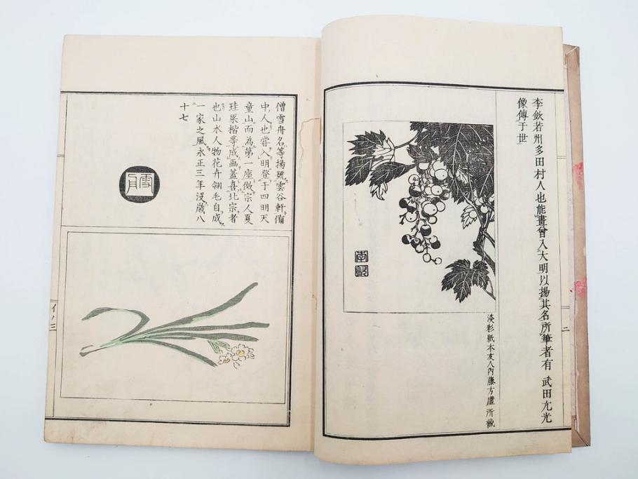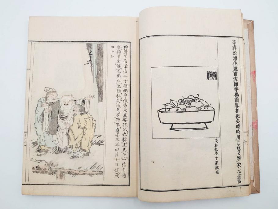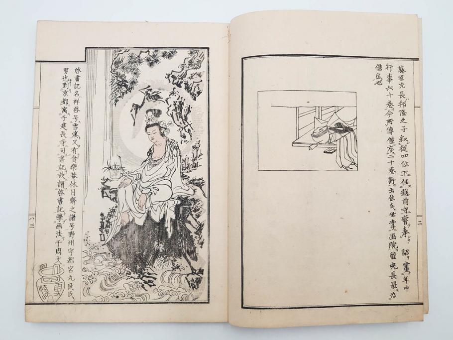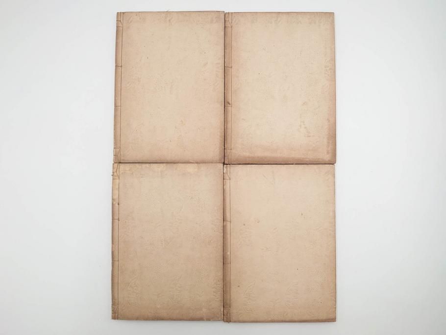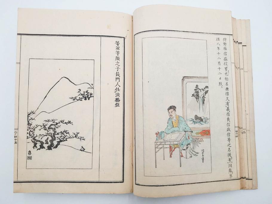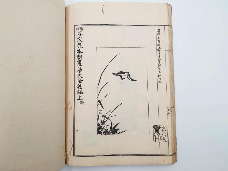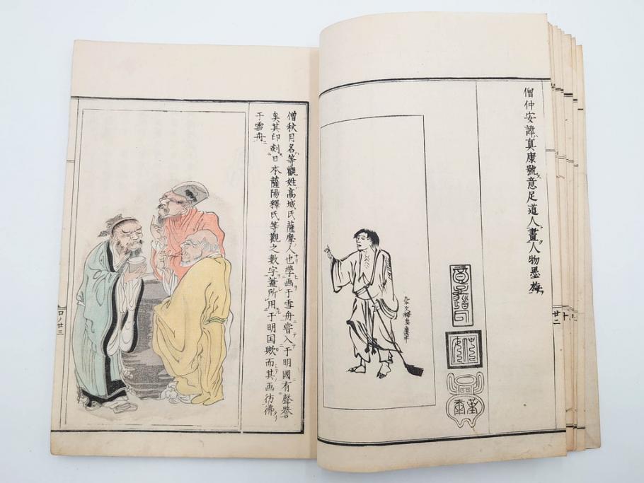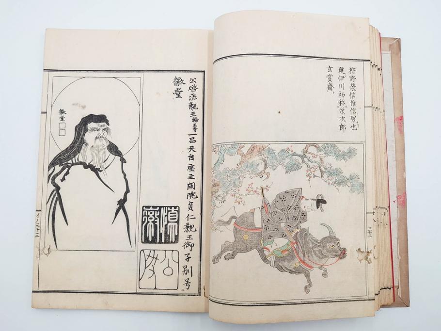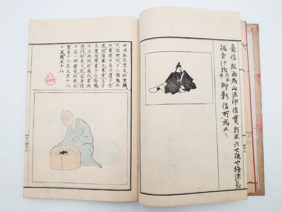 明治27年 増補 谷文晁本朝画纂大全 4冊揃(彩色木版画、古書、和本)(R-083690)