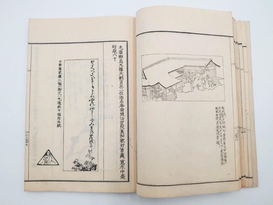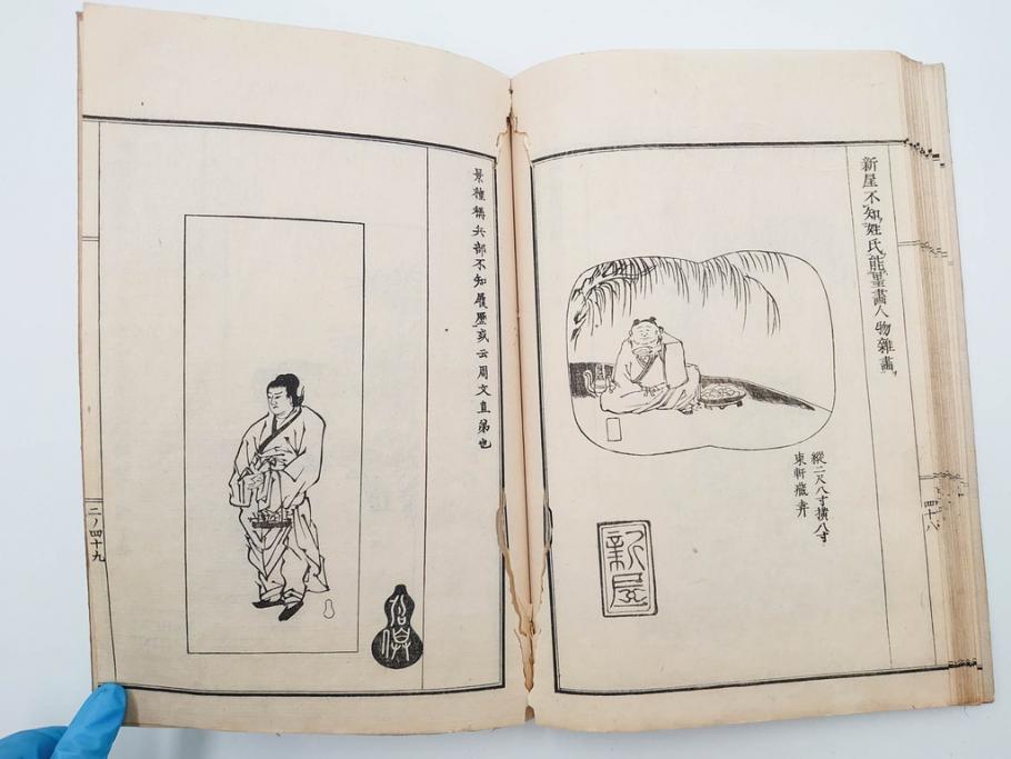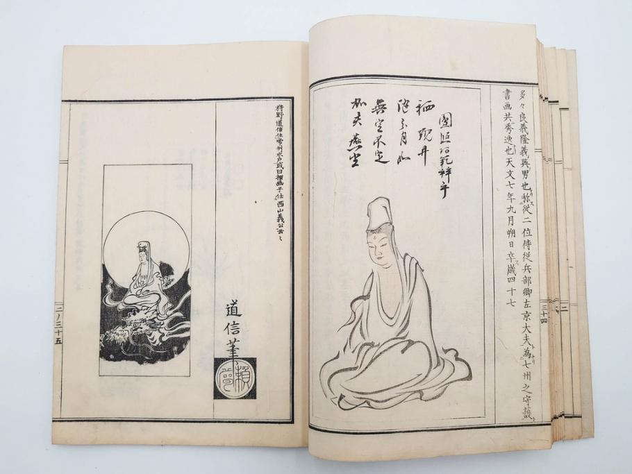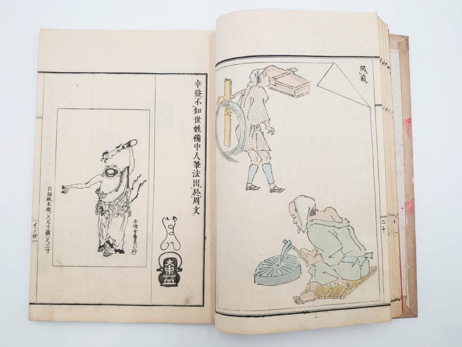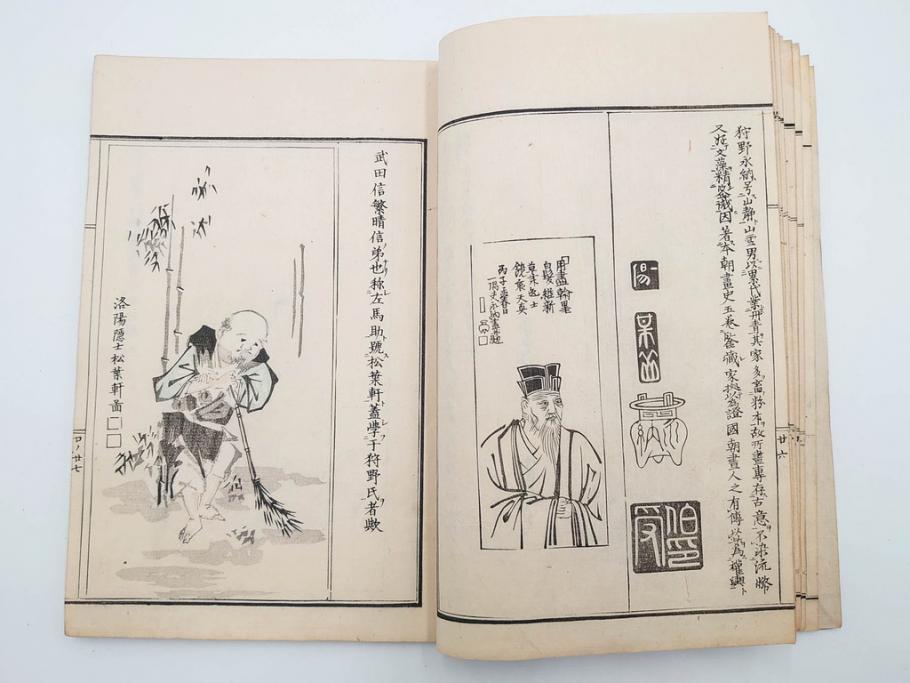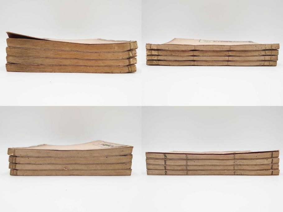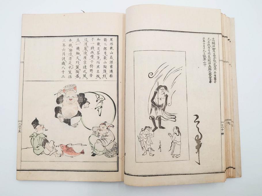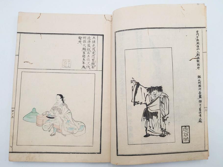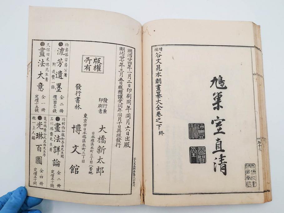 明治27年 増補 谷文晁本朝画纂大全 4冊揃(彩色木版画、古書、和本)(R-083690)