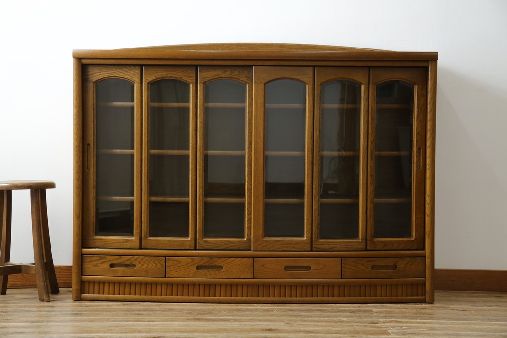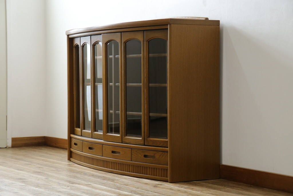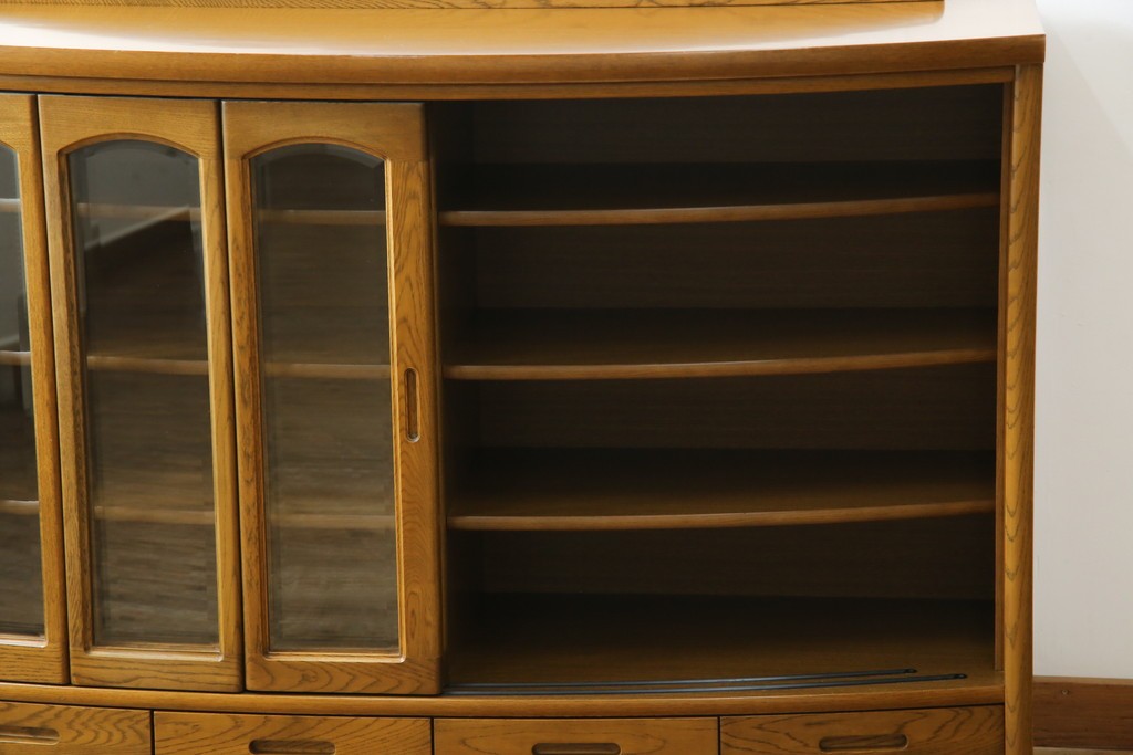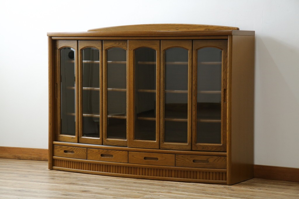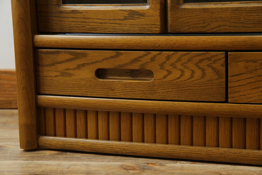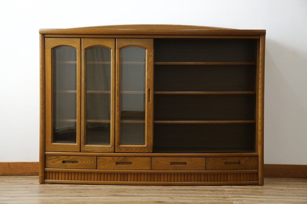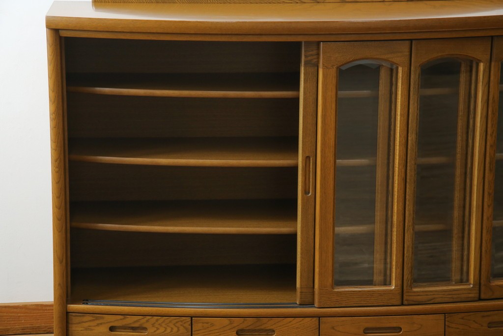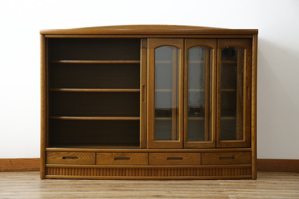 中古 展示品 美品 浜本工芸 楢(ナラ)材 優美な佇まいが素敵!ゆるやかな曲線のサイドボード 定価約23万円相当 (R-083709)
