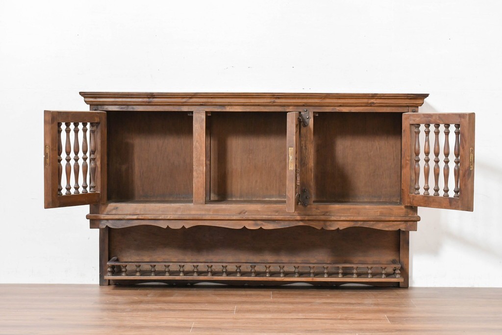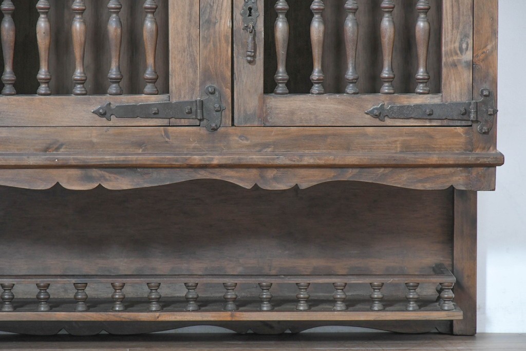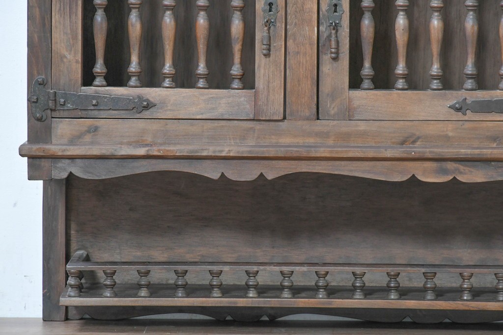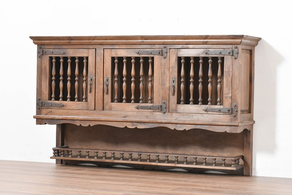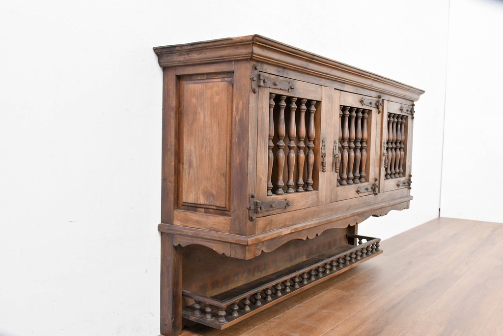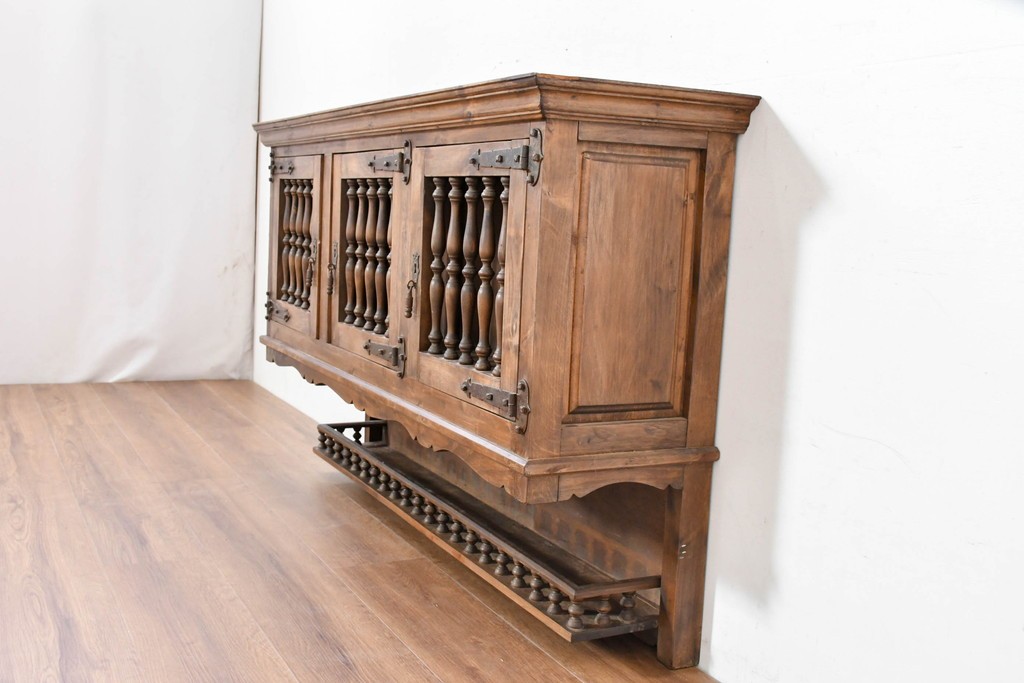 スペインヴィンテージ 木と金具が織りなす構築的な美!!スピンドルが目を引く吊り棚 (R-083710)