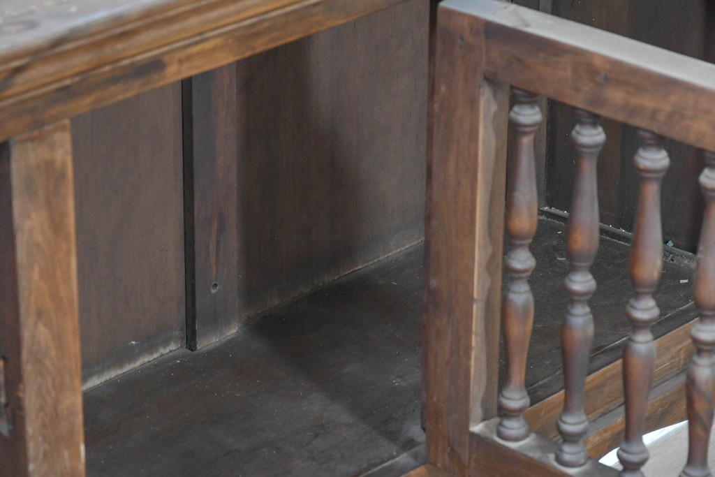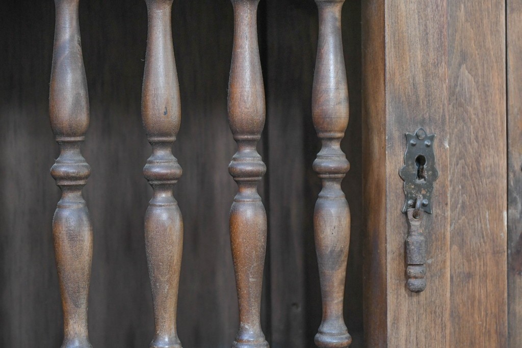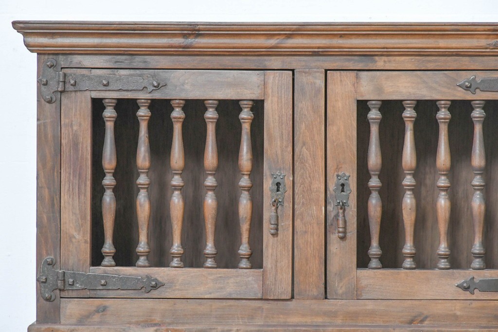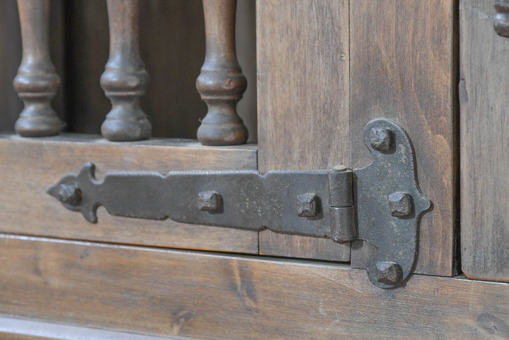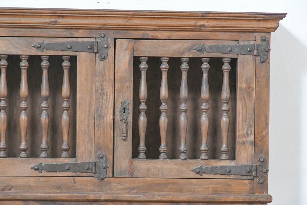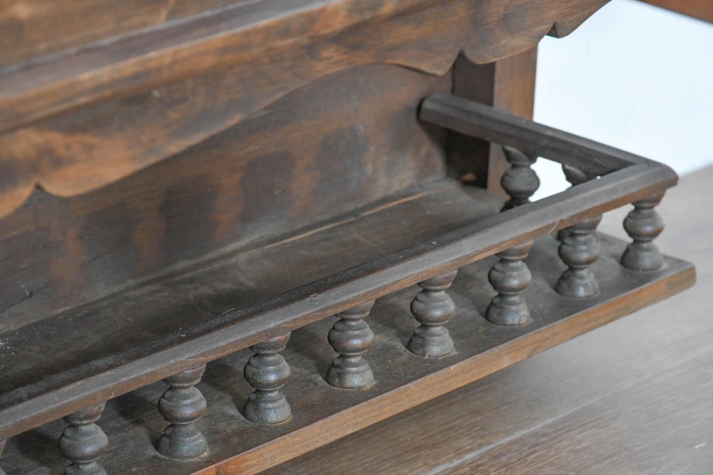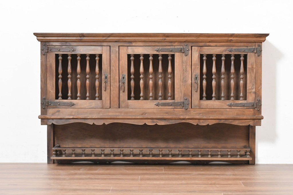 スペインヴィンテージ 木と金具が織りなす構築的な美!!スピンドルが目を引く吊り棚 (R-083710)