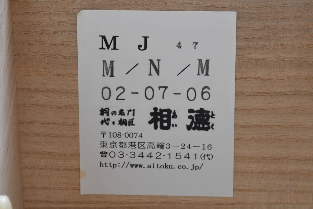 チェスト・引き出し > 中古 東京の伝統工芸 桐の名門相徳(あいとく) 総会津桐 並厚 引き出しの装飾金具が上品な桐箪笥 (R-083711)