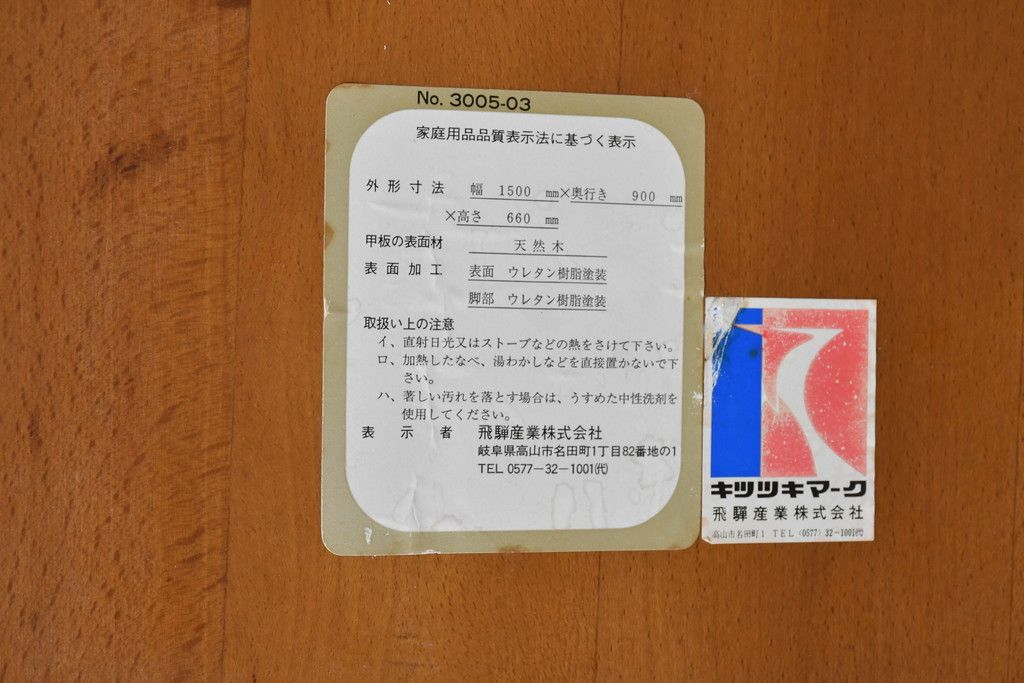 テーブル> 4人用ダイニングテーブル > 中古 美品 飛騨産業 キツツキマーク 穂高シリーズ 気品漂う佇まいが素敵なダイニングテーブル(食卓、4人掛け、6人掛け、オーバルテーブル、4人用、6人用)(R-083718)
