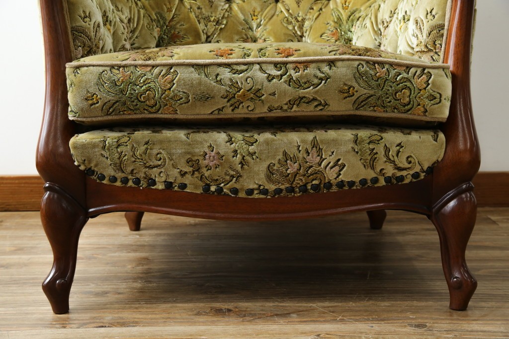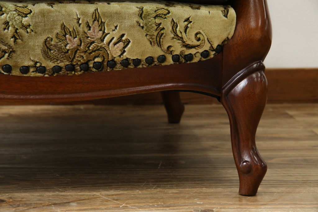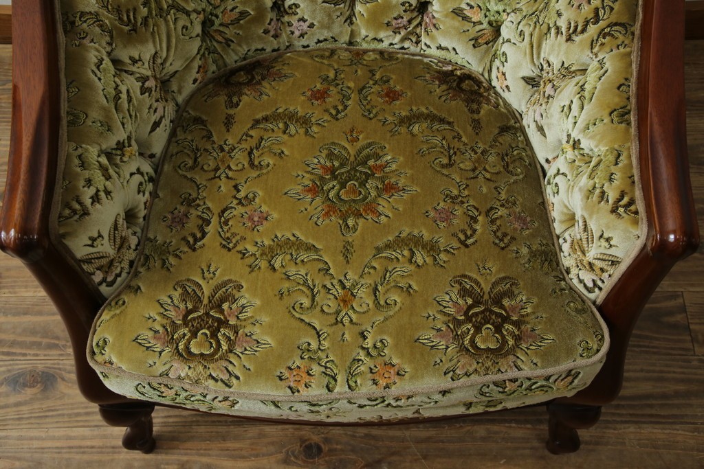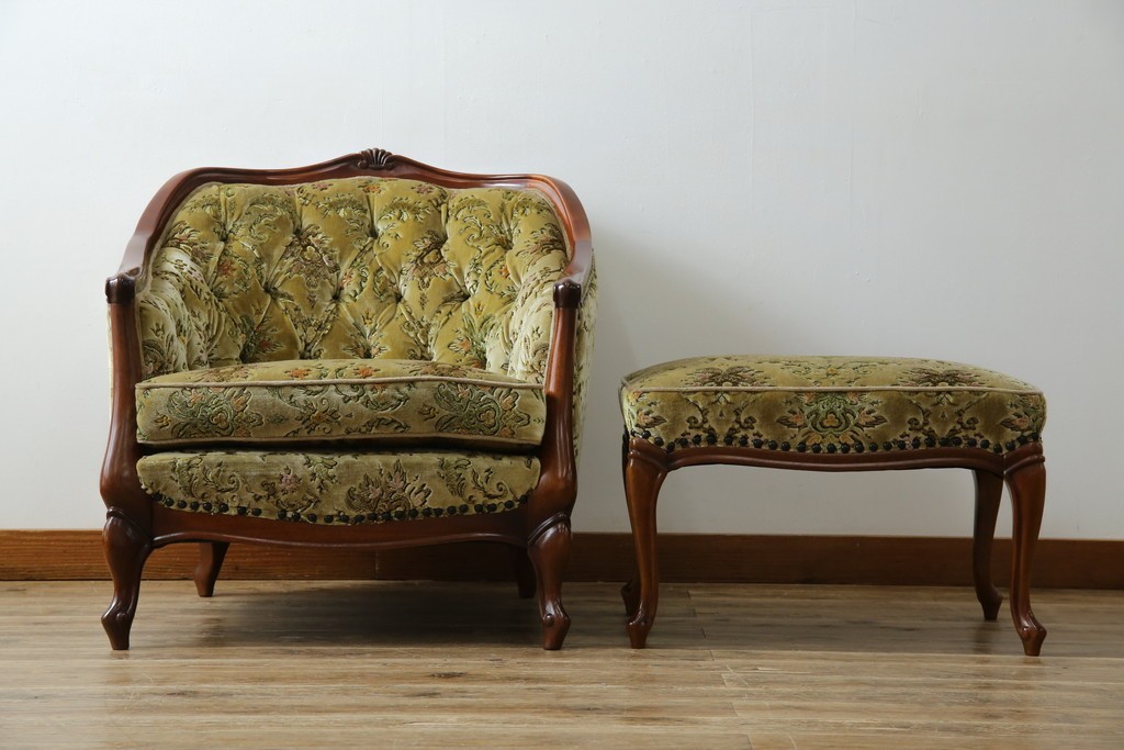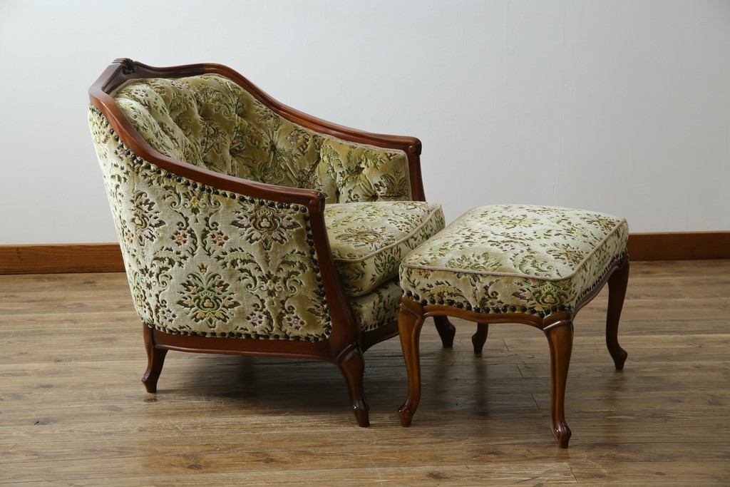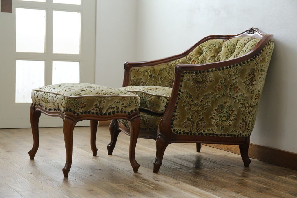中古 美品 maruni(マルニ木工) マキシマムシリーズ エレガントさとクラシカルな雰囲気を兼ね備えたアームソファとオットマンセット(1人掛けソファ、一人掛けソファ、1Pソファ、フットスツール、椅子、イス)(定価約30万円)(R-083766)
