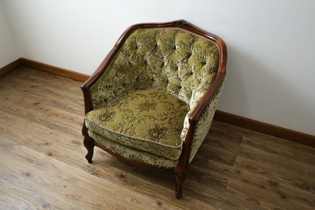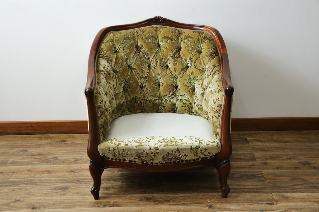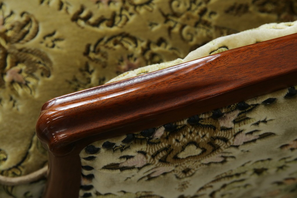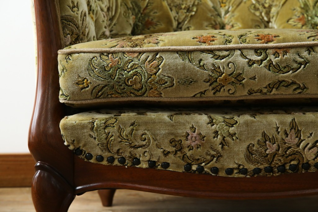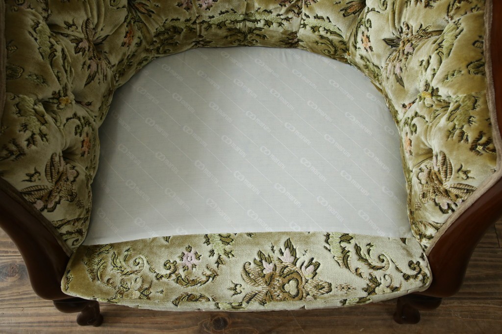 ソファ> 1人掛けソファ > 中古 美品 maruni(マルニ木工) マキシマムシリーズ エレガントさとクラシカルな雰囲気を兼ね備えたアームソファとオットマンセット(1人掛けソファ、一人掛けソファ、1Pソファ、フットスツール、椅子、イス)(定価約30万円)(R-083766)