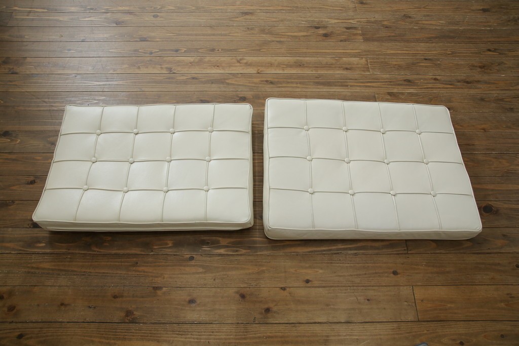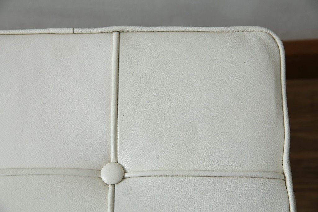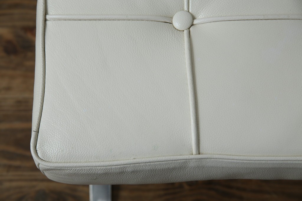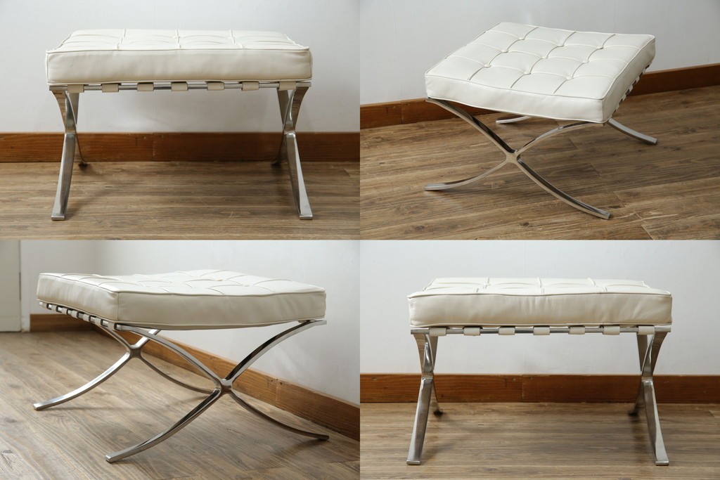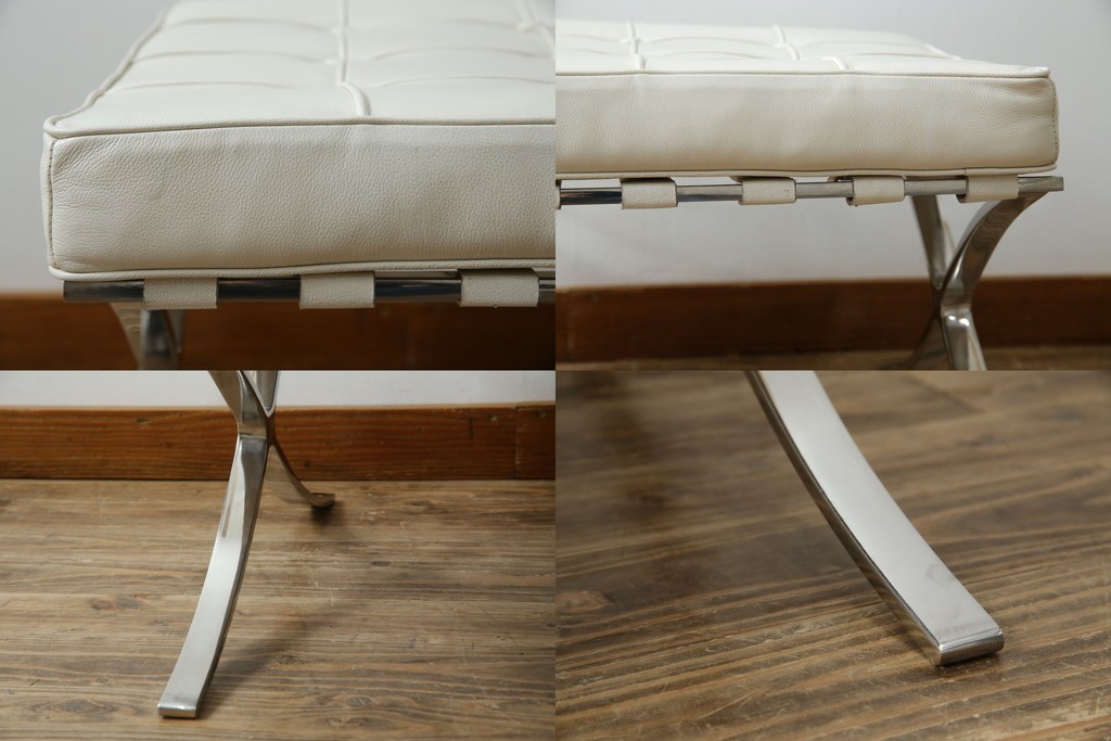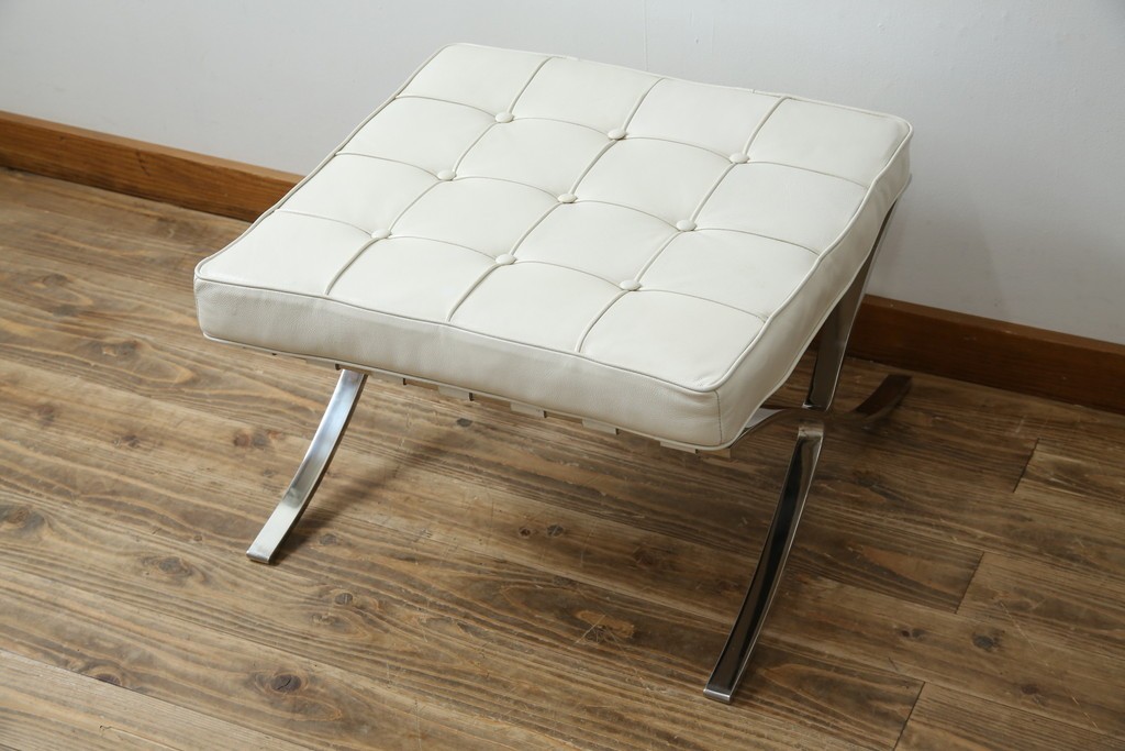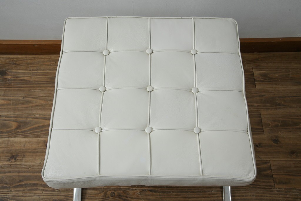 ソファ> オットマン > イタリアビンテージ リプロダクト品 本革 モダンな寛ぎ空間を演出するバルセロナチェアとオットマンのセット(バルセロナスツール、1人掛けソファ、椅子、イス、ヴィンテージ)(当時25万円で購入)(R-083780)