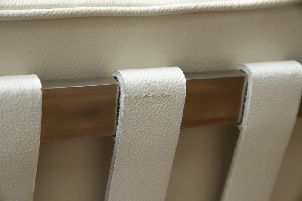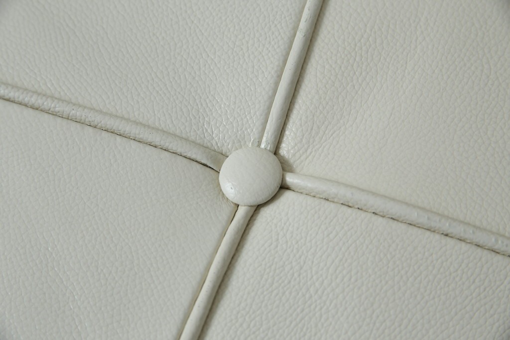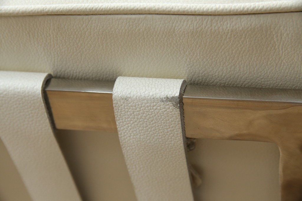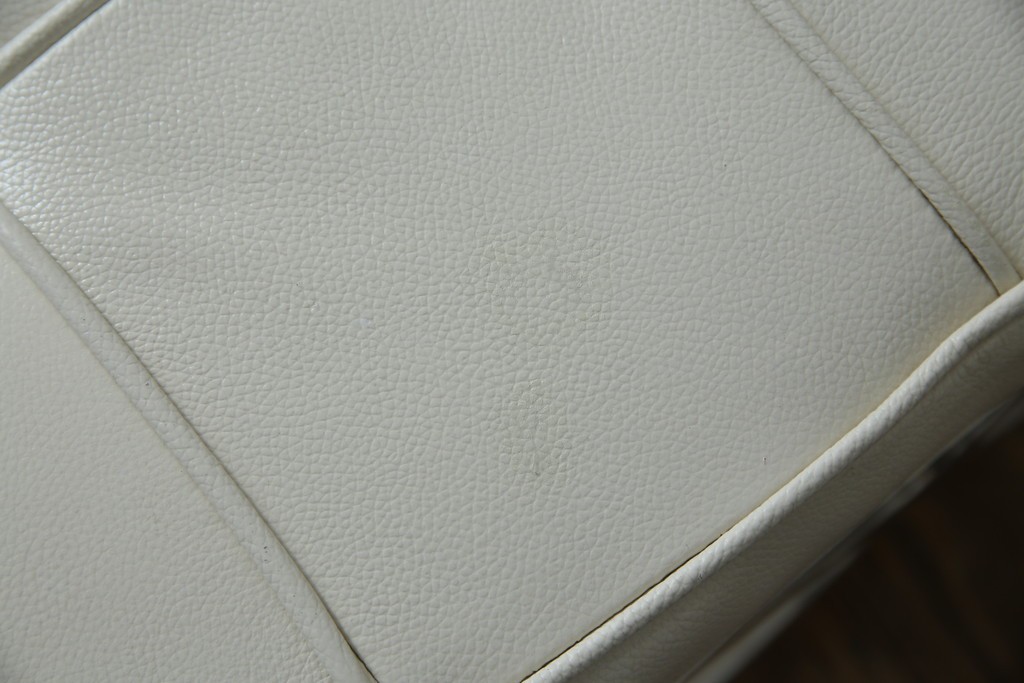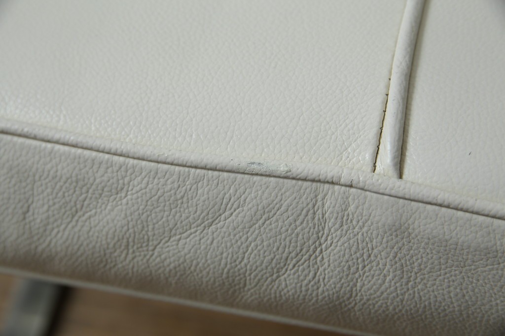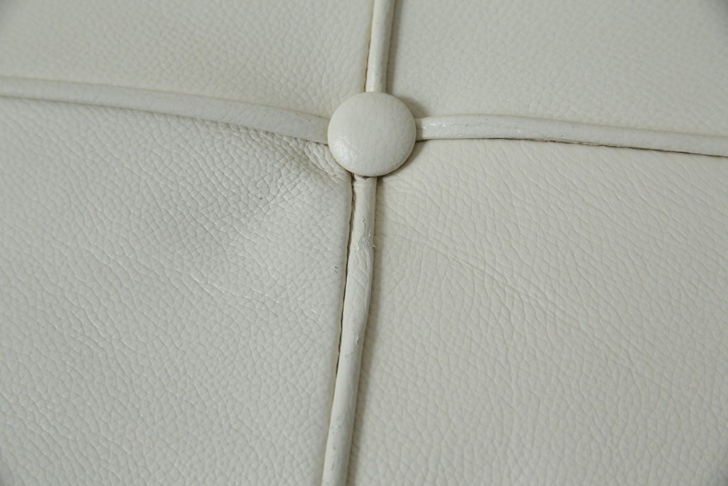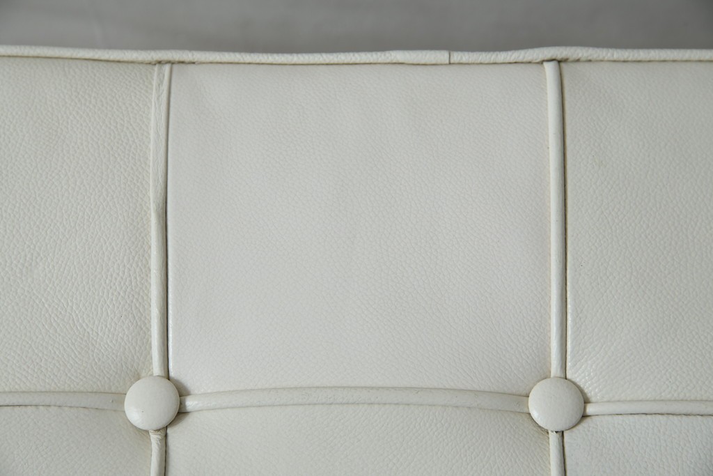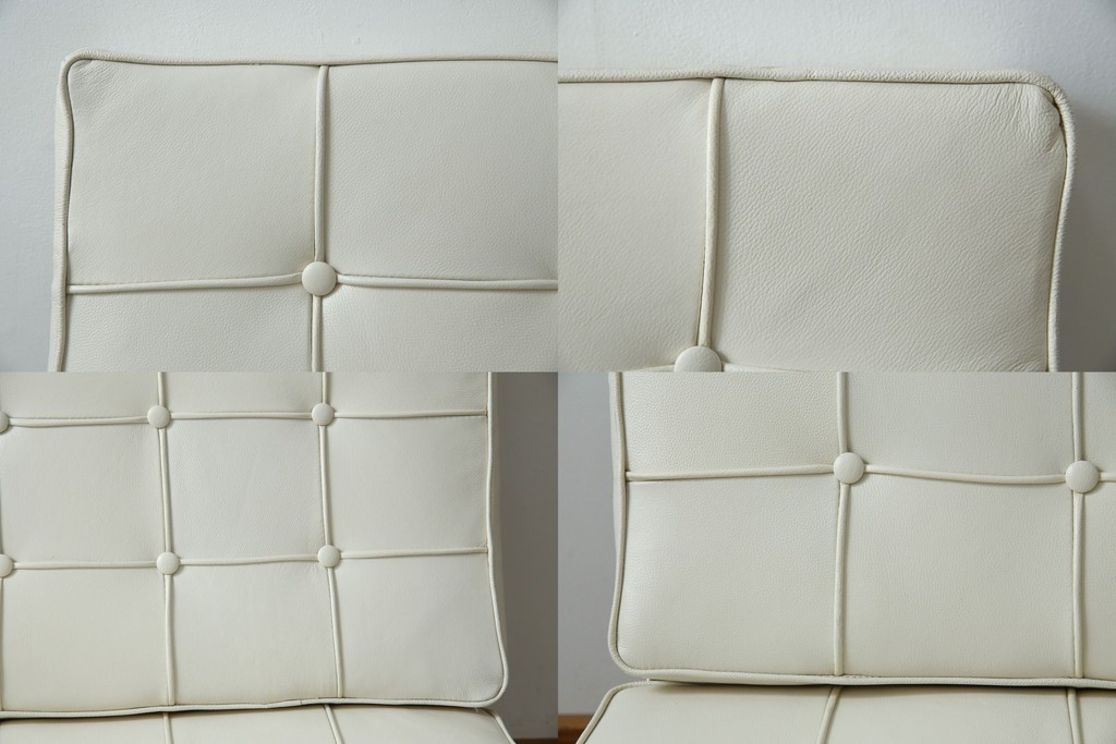 ソファ> オットマン > イタリアビンテージ リプロダクト品 本革 モダンな寛ぎ空間を演出するバルセロナチェアとオットマンのセット(バルセロナスツール、1人掛けソファ、椅子、イス、ヴィンテージ)(当時25万円で購入)(R-083780)
