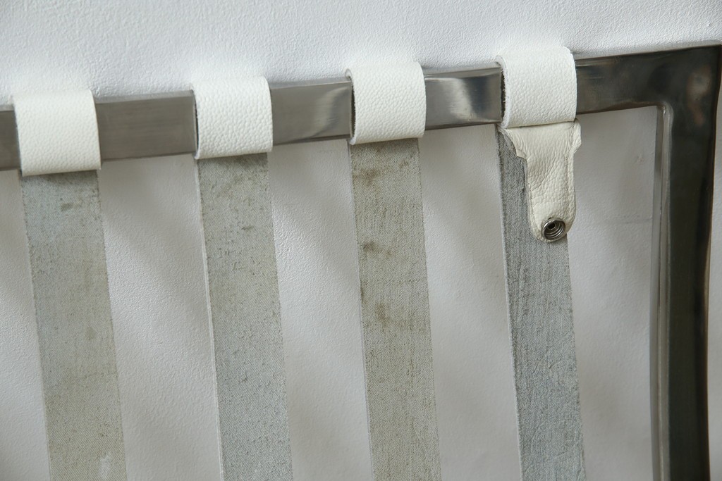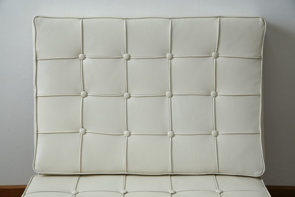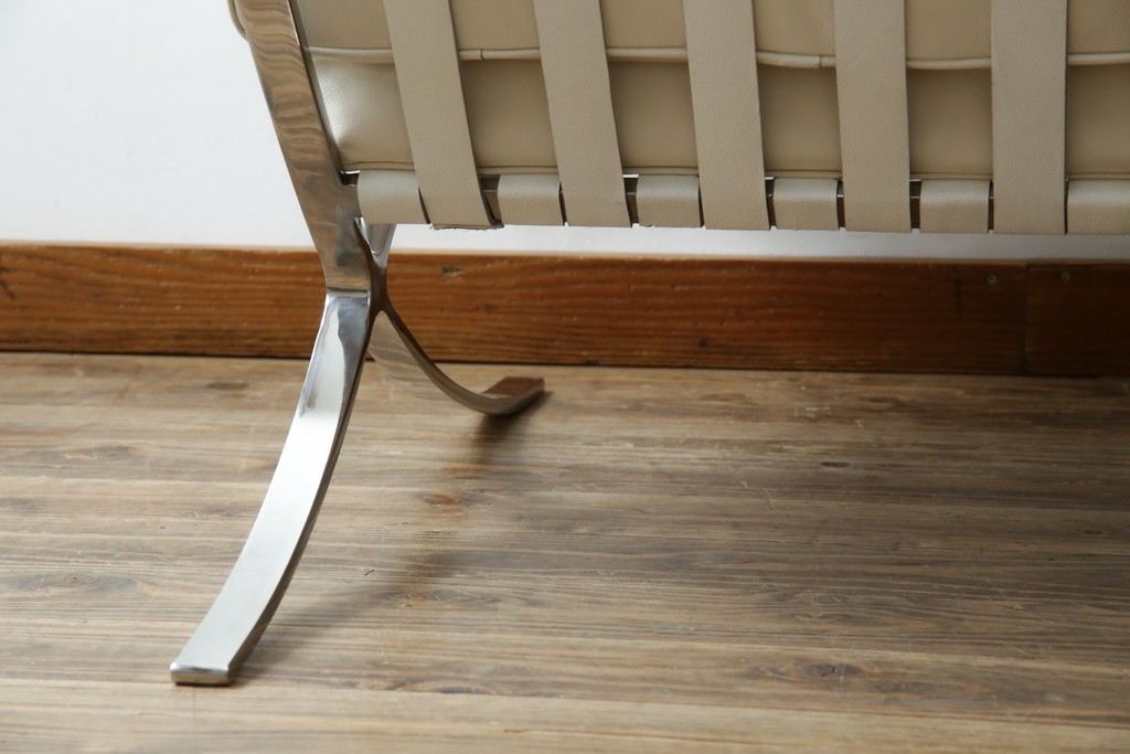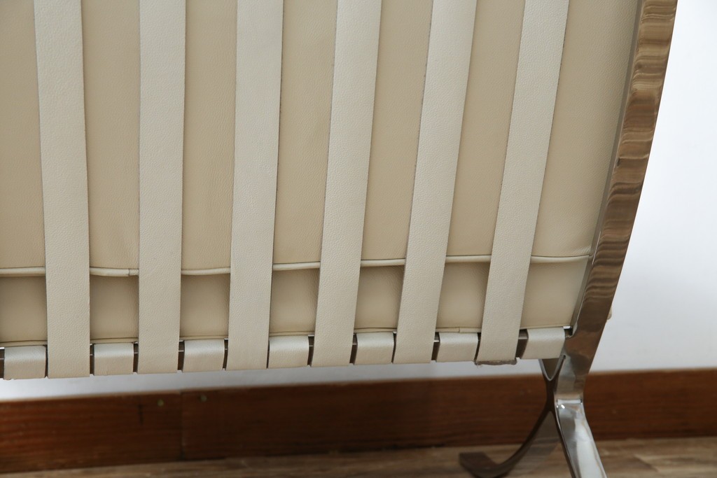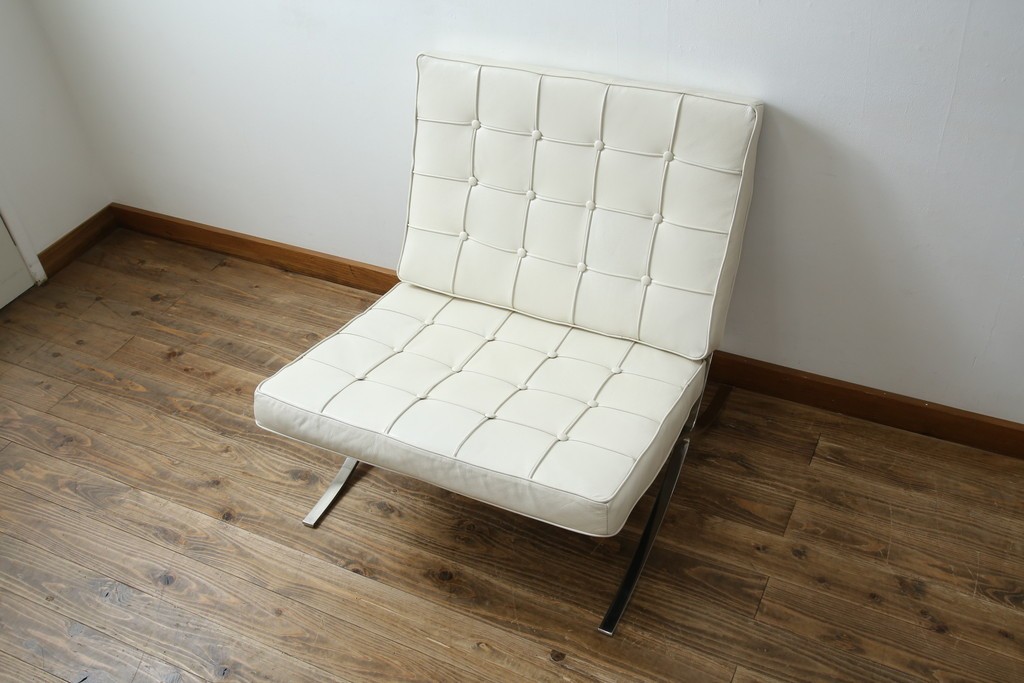 ソファ> 1人掛けソファ > イタリアビンテージ リプロダクト品 本革 モダンな寛ぎ空間を演出するバルセロナチェアとオットマンのセット(バルセロナスツール、1人掛けソファ、椅子、イス、ヴィンテージ)(当時25万円で購入)(R-083780)