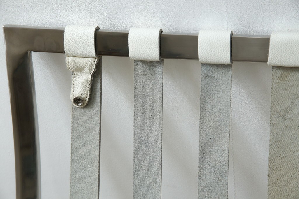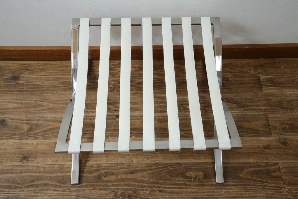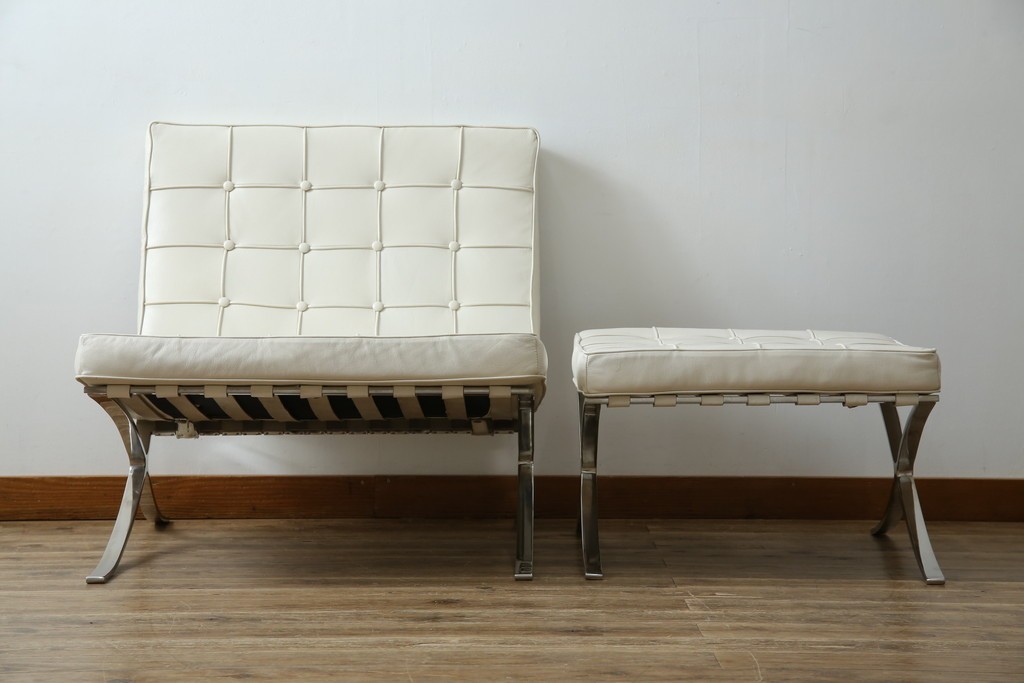 イタリアビンテージ リプロダクト品 本革 モダンな寛ぎ空間を演出するバルセロナチェアとオットマンのセット(バルセロナスツール、1人掛けソファ、椅子、イス、ヴィンテージ)(当時25万円で購入)(R-083780)