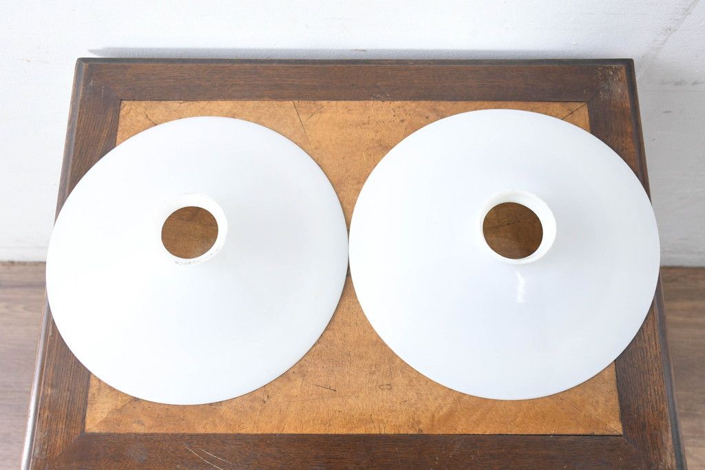 《引っ掛けシーリング式ペンダントライト加工費込み》 和製アンティーク 戦前 レトロな平笠2個セット(天井照明カバー、吊り下げ照明カバー、シェード、電笠)(R-083814)です。