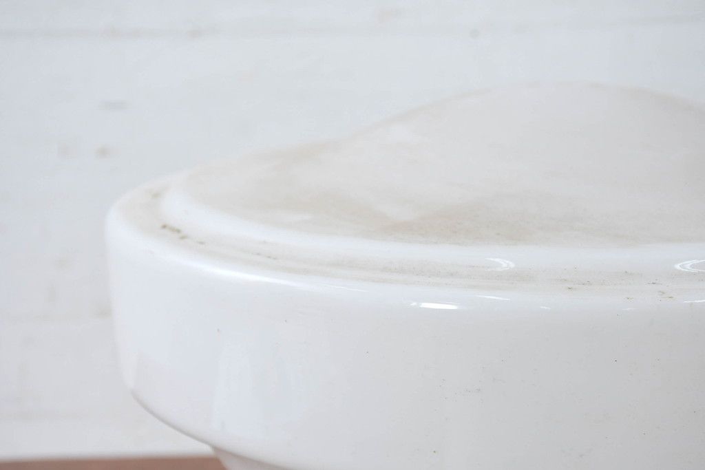 照明・ランプ> ペンダントライト > 《引っ掛けシーリング式ペンダントライト加工費込み》 和製アンティーク 丸みを帯びたフォルムかわいらしい乳白ガラスペンダントライト(天井照明カバー、吊り下げ照明、シェード、電笠)(R-083820)