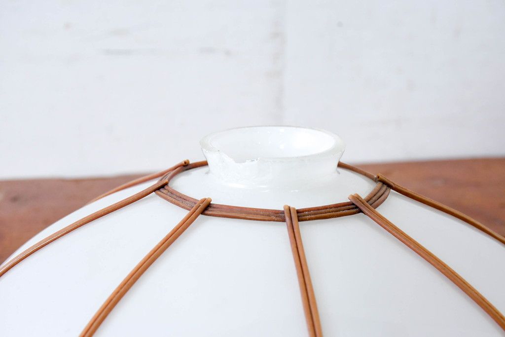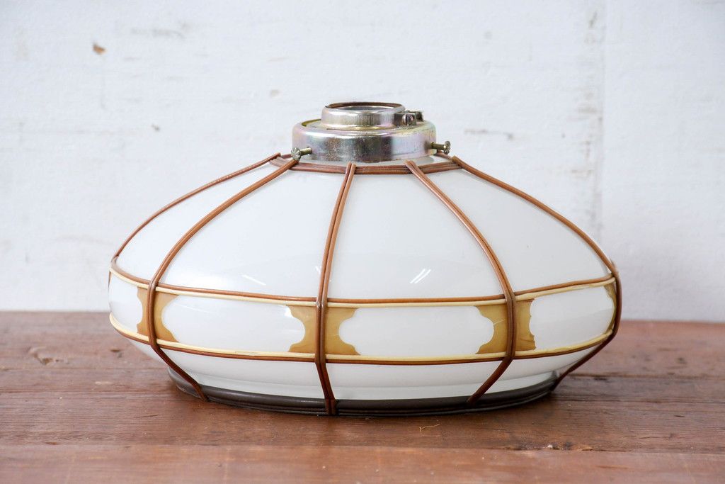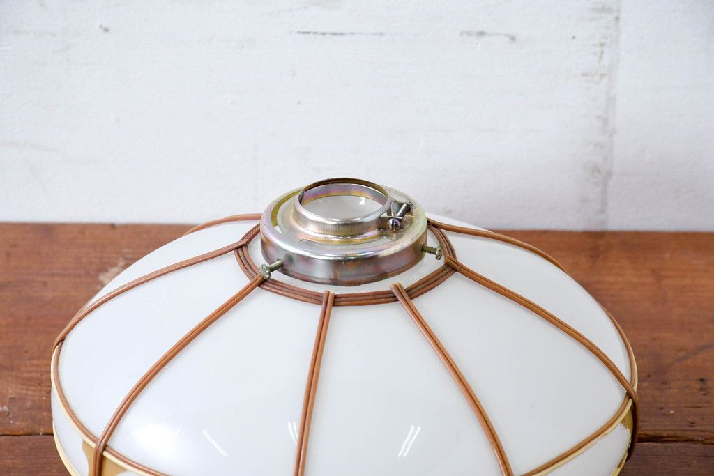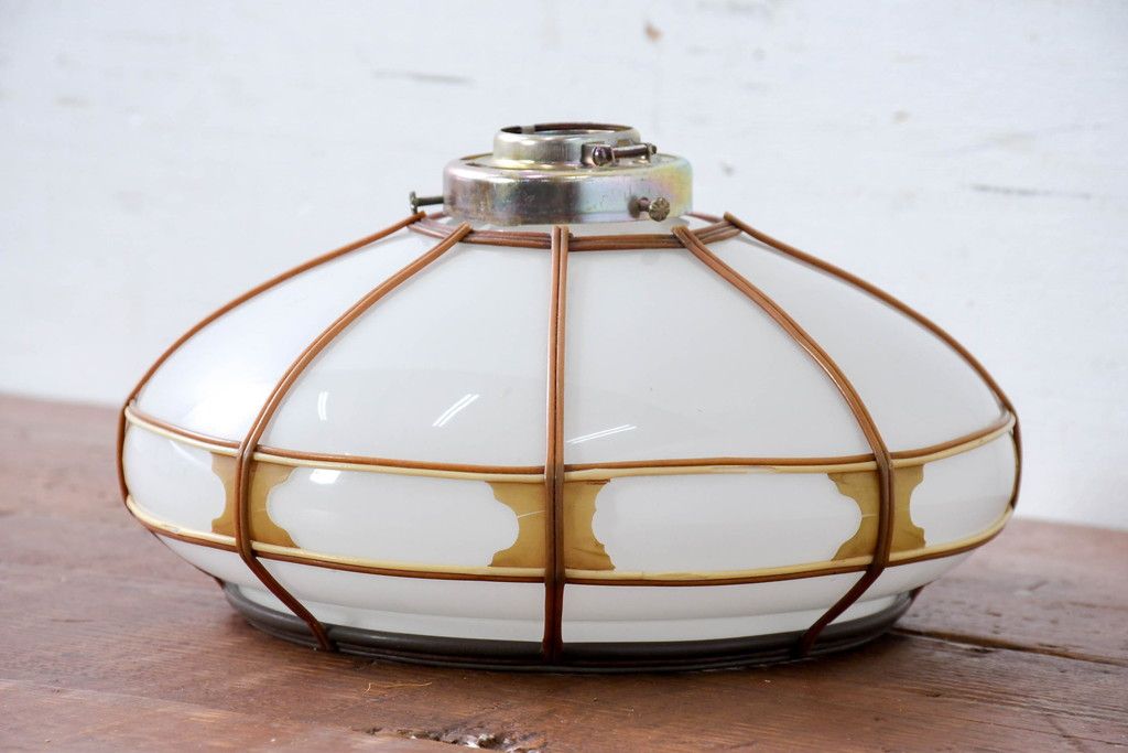 《引っ掛けシーリング式ペンダントライト加工費込み》 和製アンティーク セルロイド装飾 柔らかな曲線と飴色の縁取りが懐かしく温かみあるペンダントライト(天井照明カバー、吊り下げ照明カバー、シェード、電笠)(R-083843)