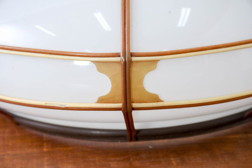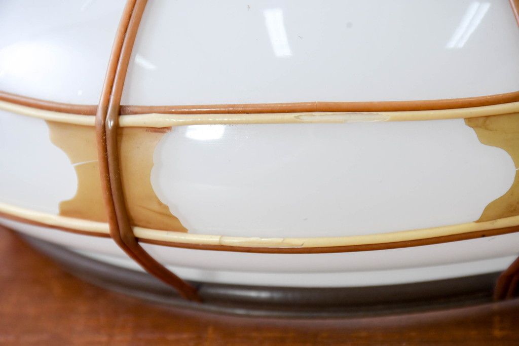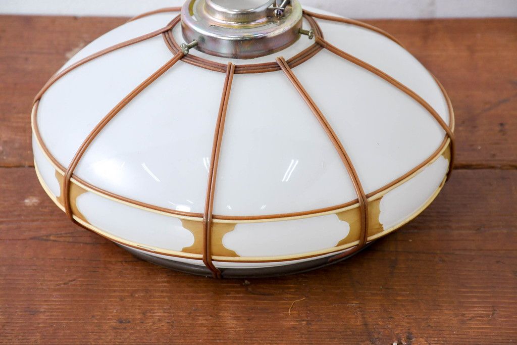 照明・ランプ> ペンダントライト > 《引っ掛けシーリング式ペンダントライト加工費込み》 和製アンティーク セルロイド装飾 柔らかな曲線と飴色の縁取りが懐かしく温かみあるペンダントライト(天井照明カバー、吊り下げ照明カバー、シェード、電笠)(R-083843)