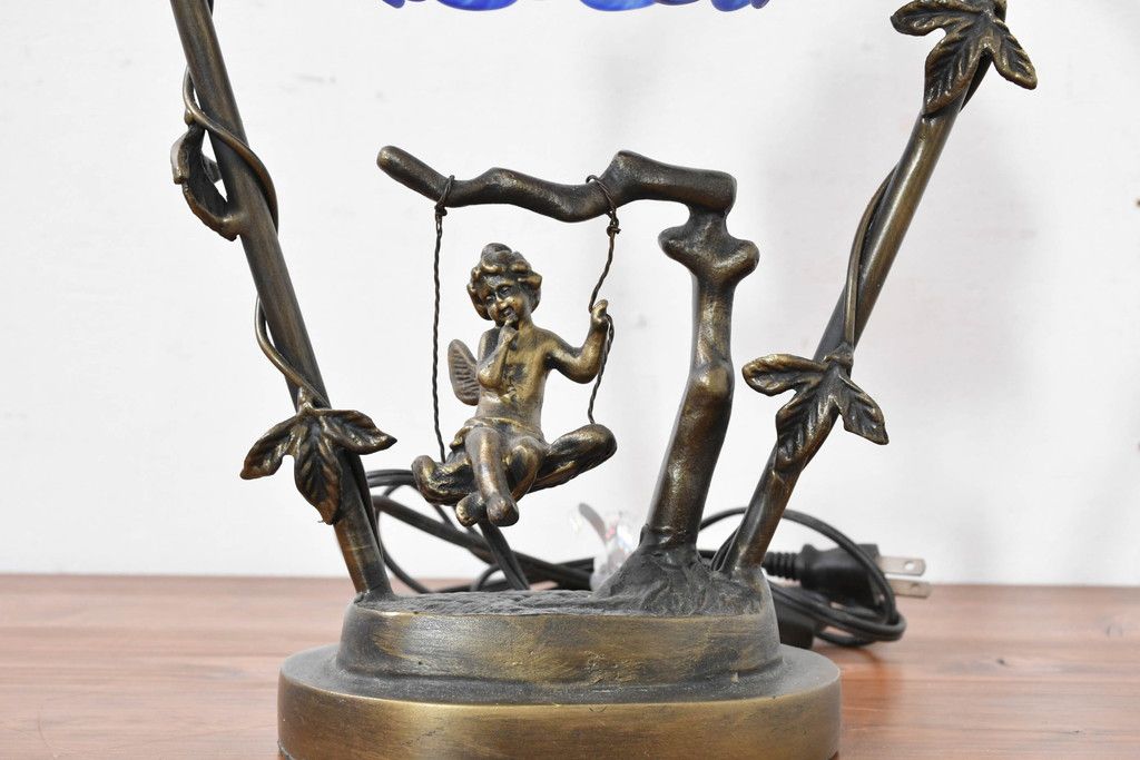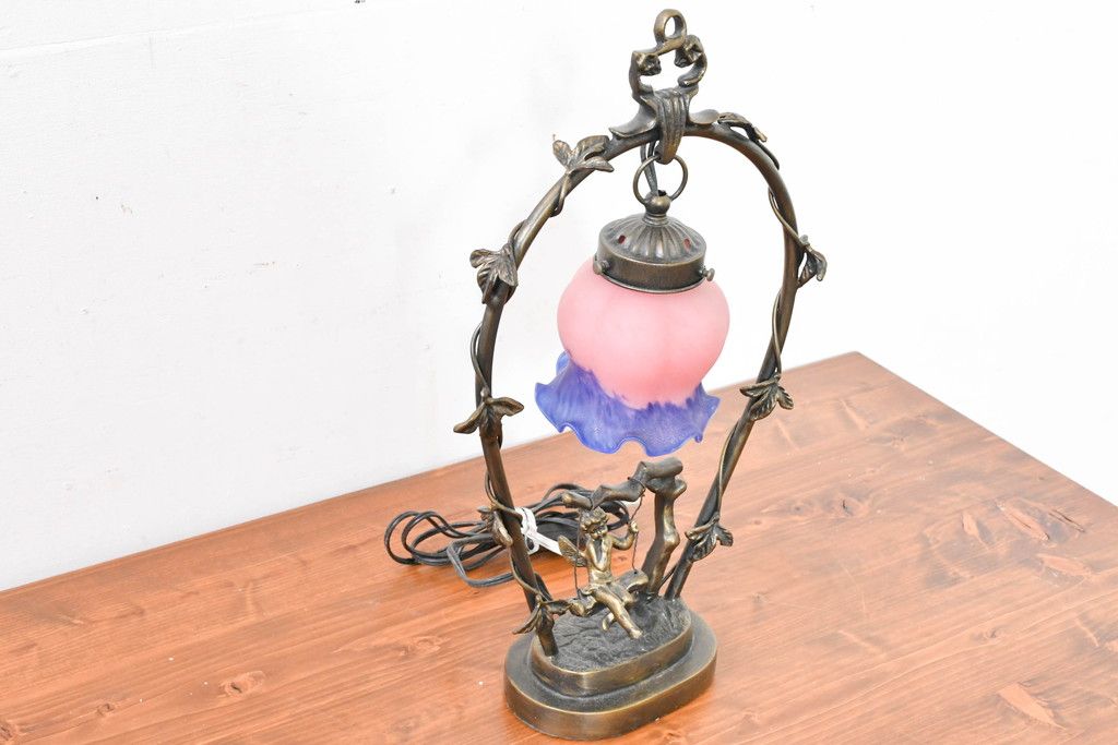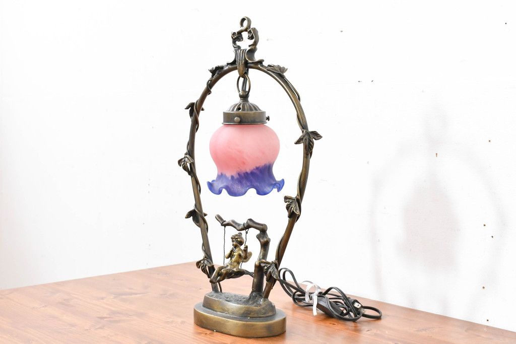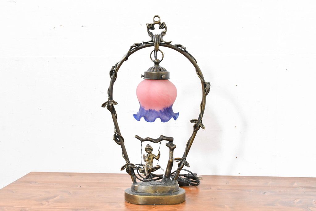 中古 アンティーク調 妖精のモチーフとツタ装飾のフレームが幻想的な雰囲気を演出するテーブルランプ(テーブルスタンド、卓上照明、テーブルライト、スタンドライト、間接照明)(R-083874)です。