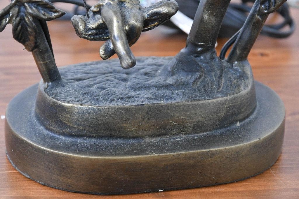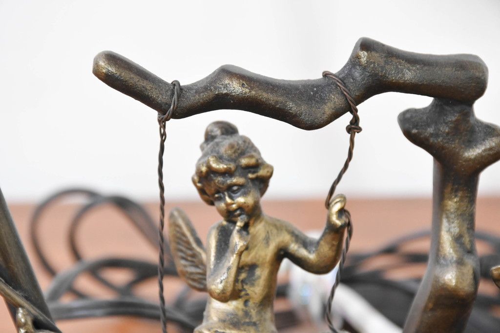 中古 アンティーク調 妖精のモチーフとツタ装飾のフレームが幻想的な雰囲気を演出するテーブルランプ(テーブルスタンド、卓上照明、テーブルライト、スタンドライト、間接照明)(R-083874)