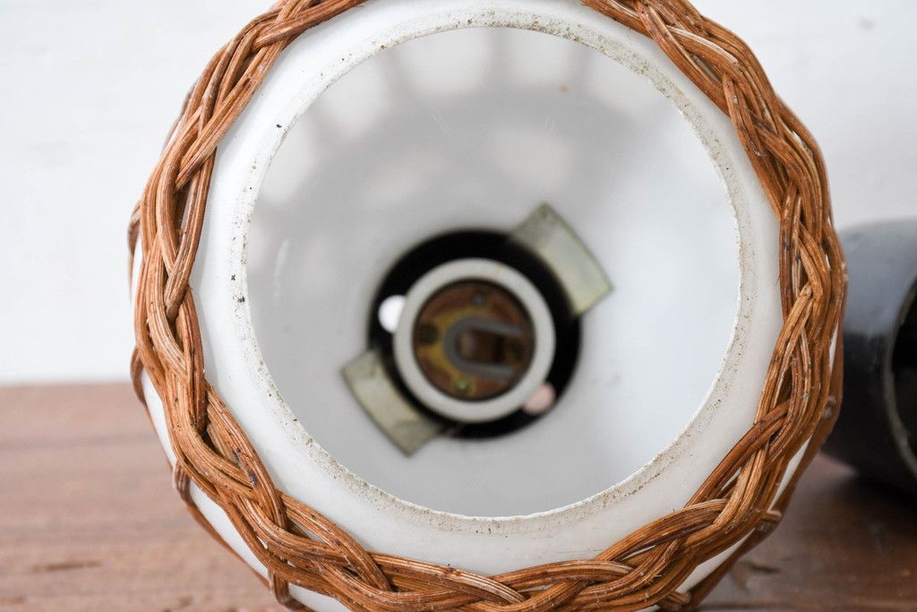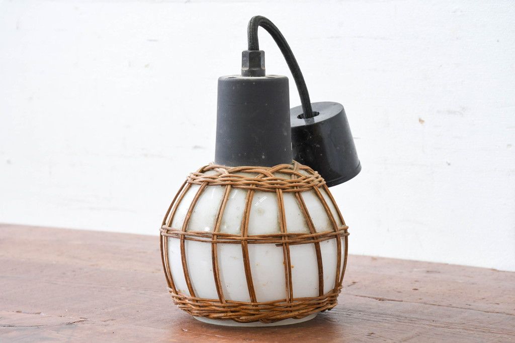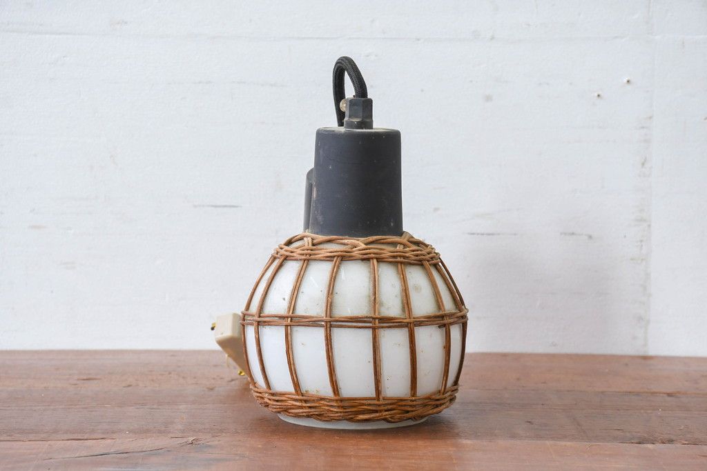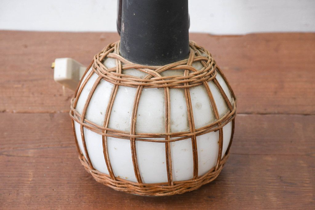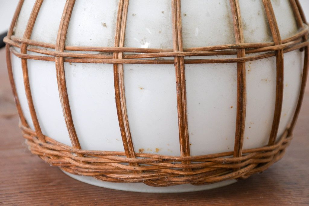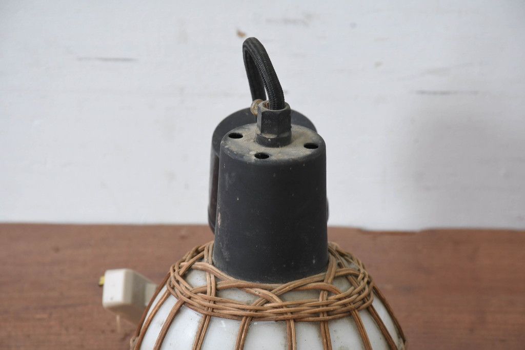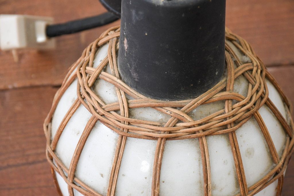 照明・ランプ> ペンダントライト > 和製ビンテージ ラタン飾り付き 温もり感じるデザインのペンダントライト(天井照明、吊り下げ照明、シェード、電笠、ヴィンテージ)(R-083894)