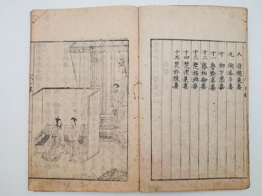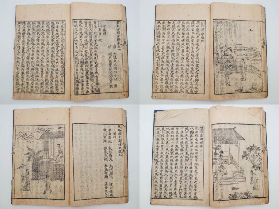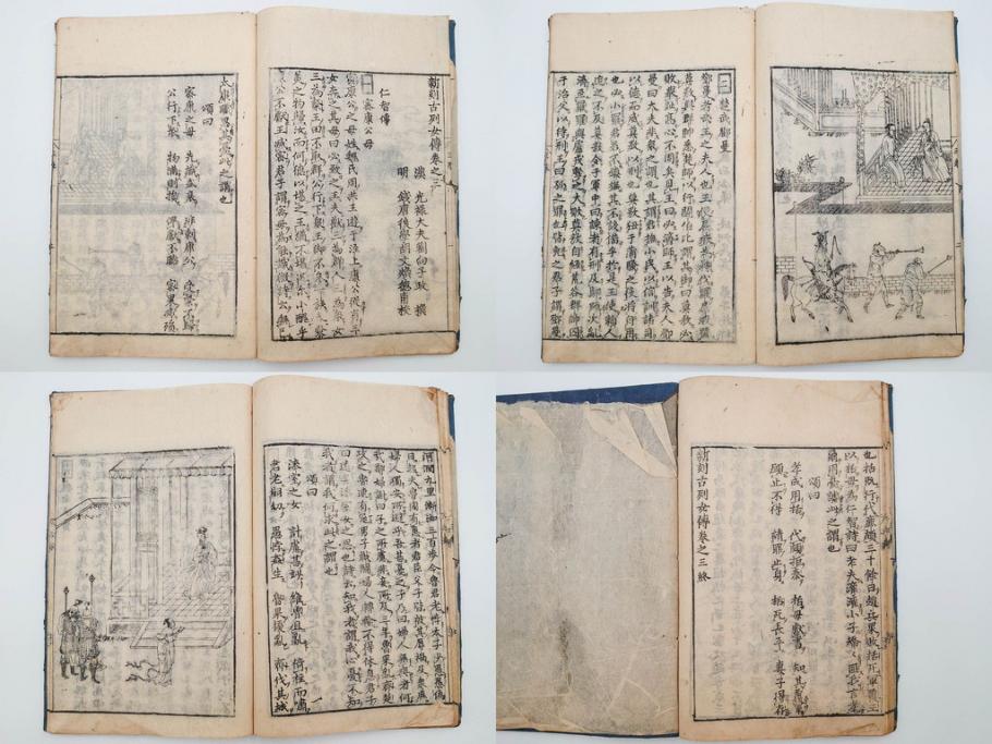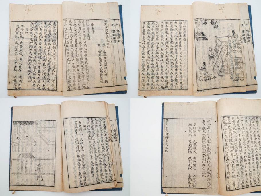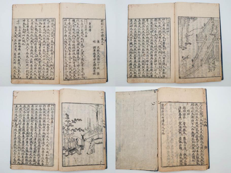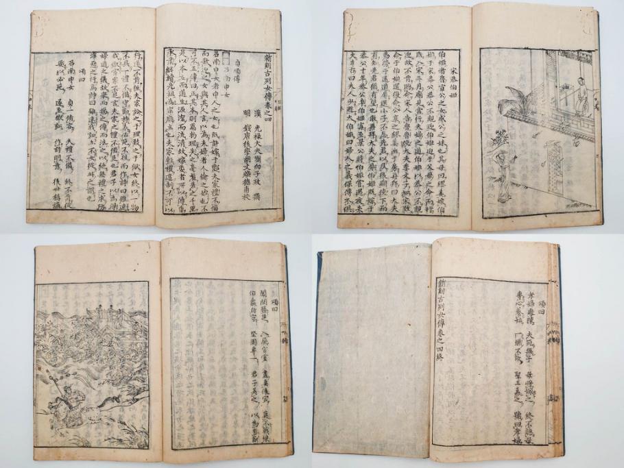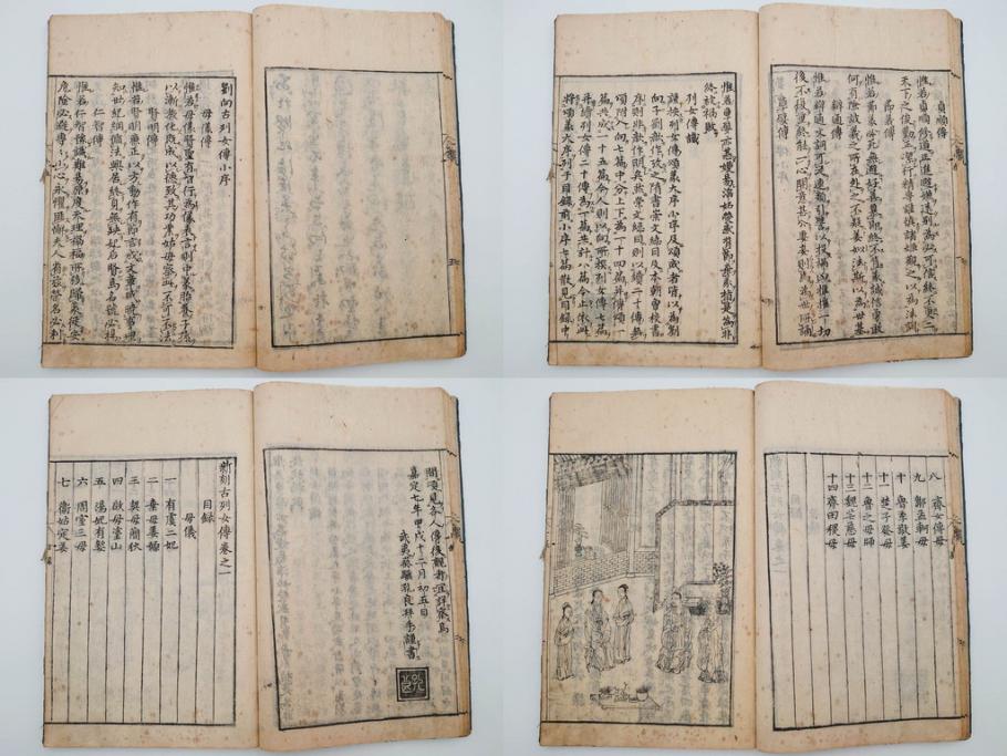 江戸期 承応2年 「新刻古列女傳(伝)」 8冊揃(木版画、伝記、絵入本、古書、和本)(R-083902)