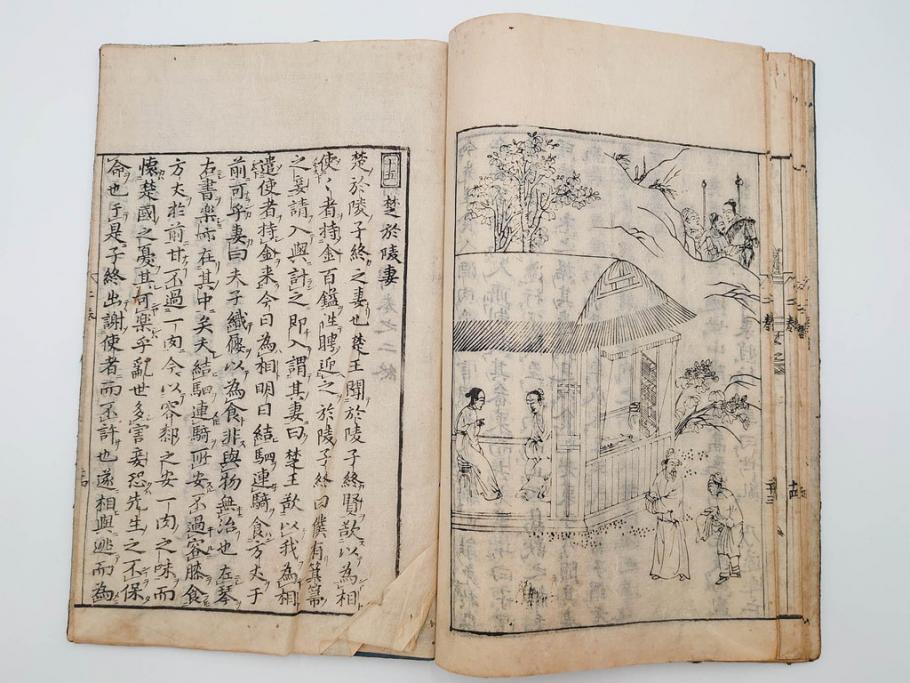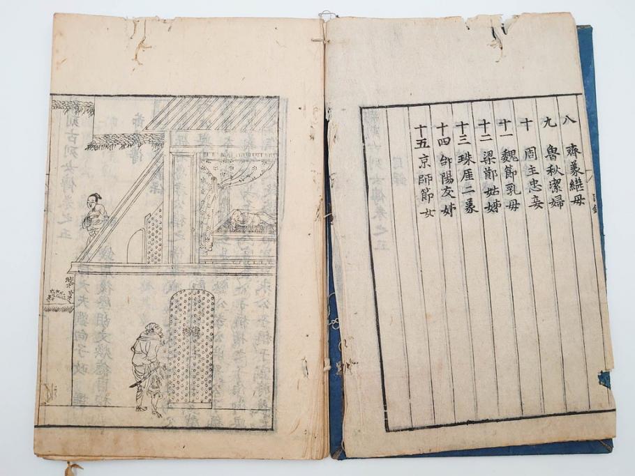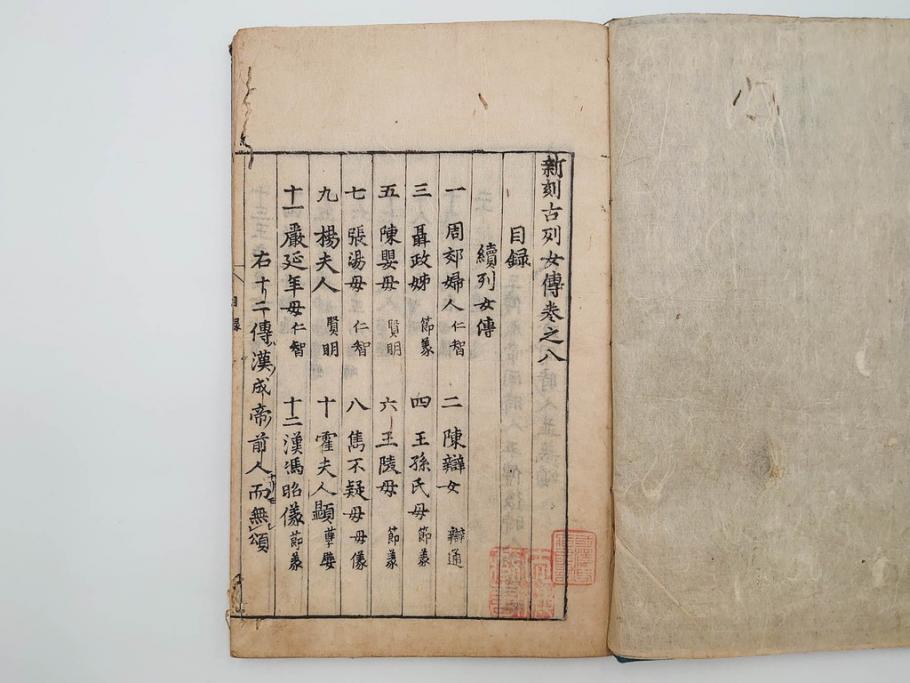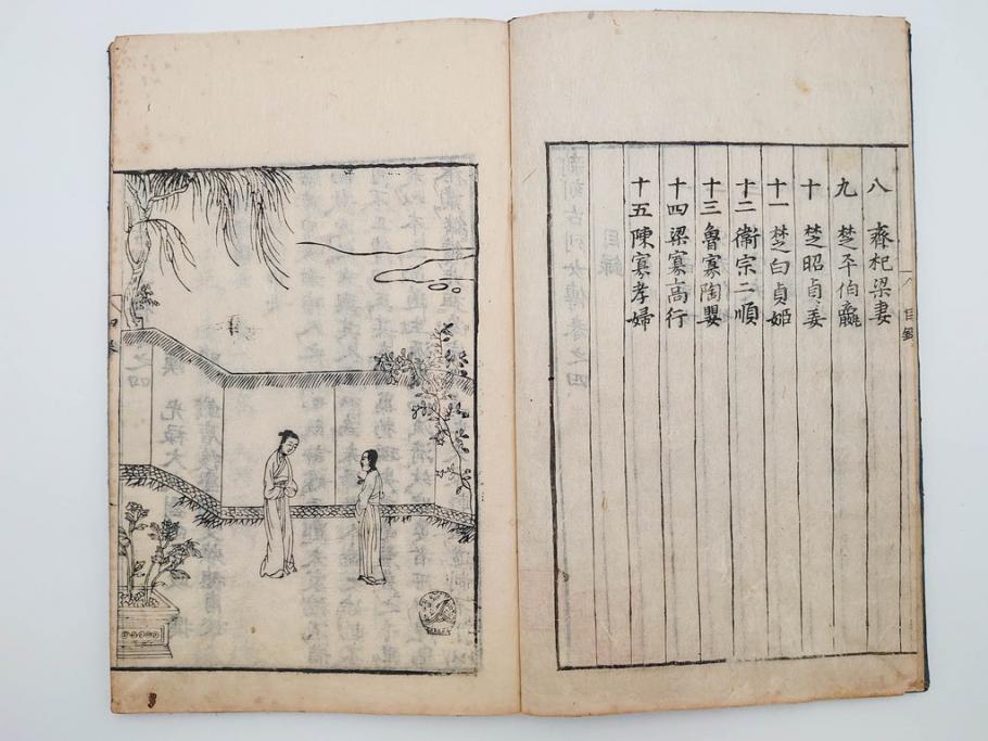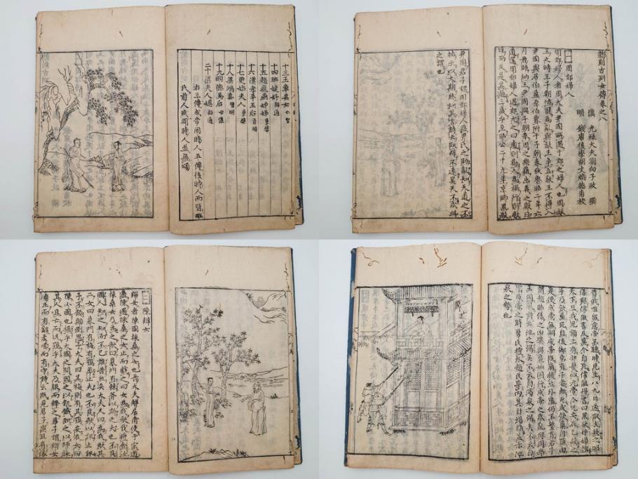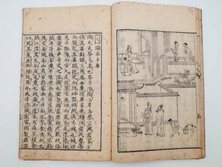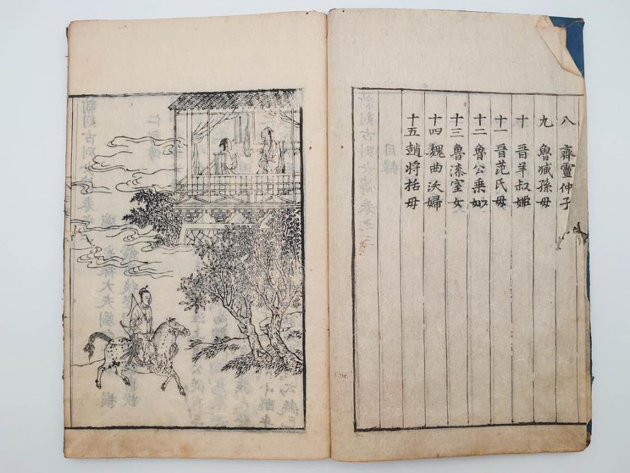 江戸期 承応2年 「新刻古列女傳(伝)」 8冊揃(木版画、伝記、絵入本、古書、和本)(R-083902)