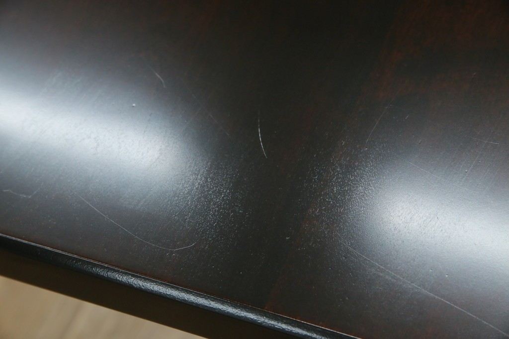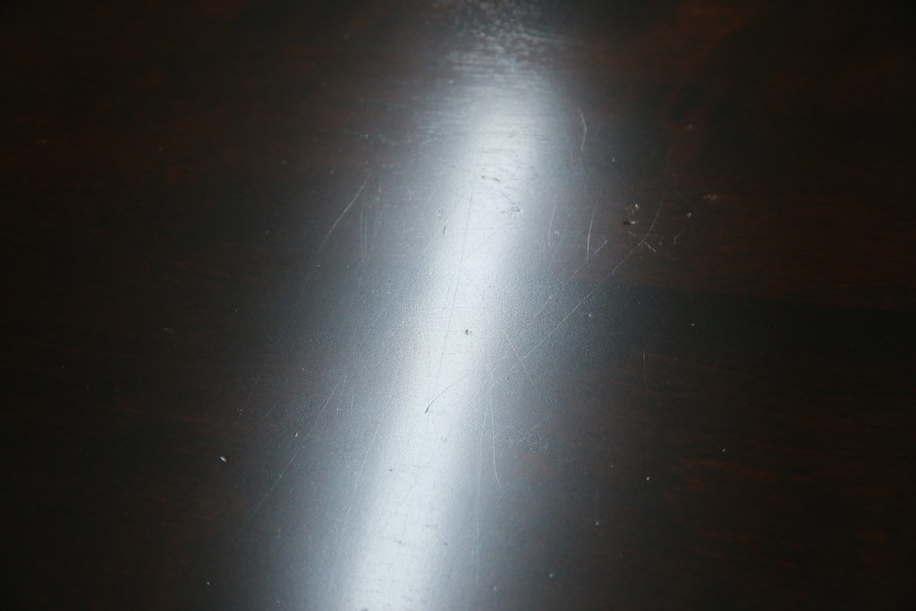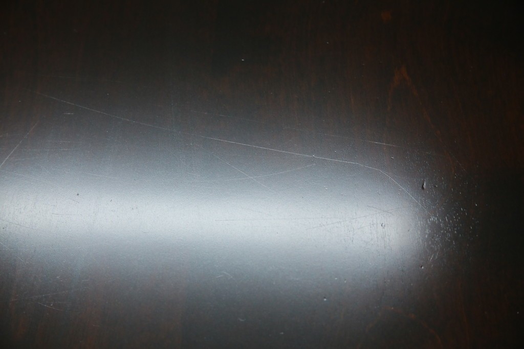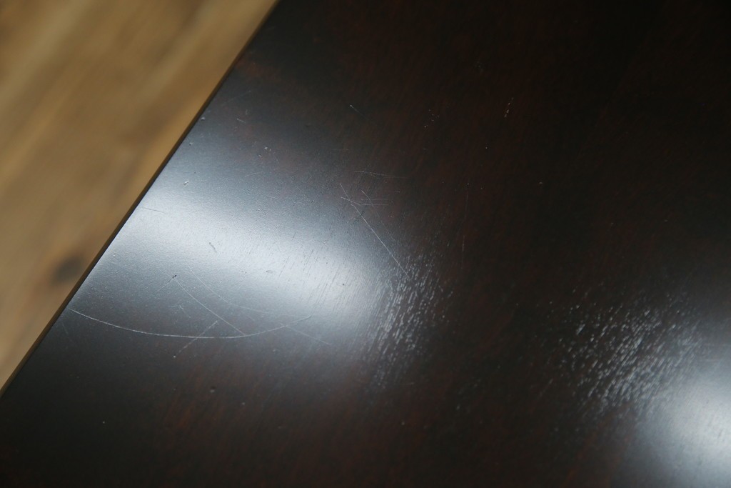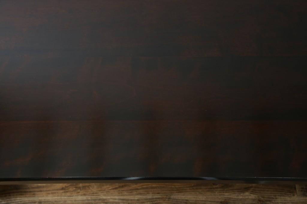 ・天板は当店でクリア塗装を施しております。小キズ等が目立ちにくく、耐水性と耐久性に優れたお手入れがしやすい仕上げです。