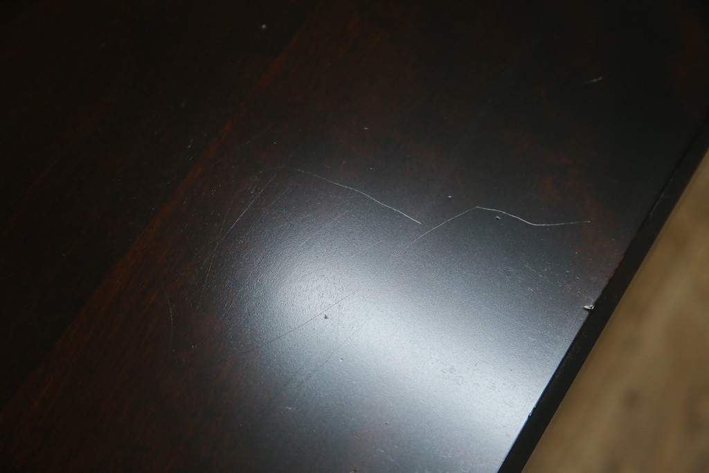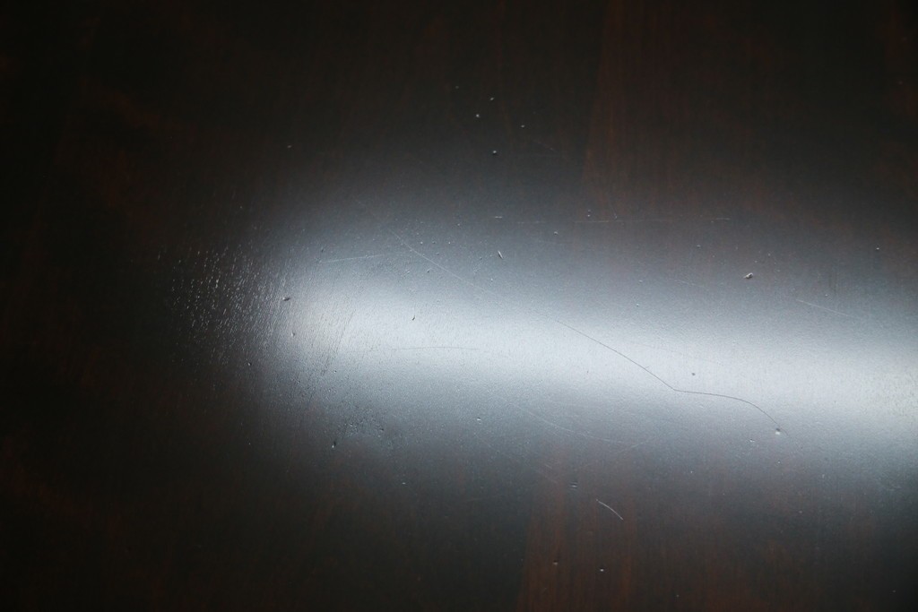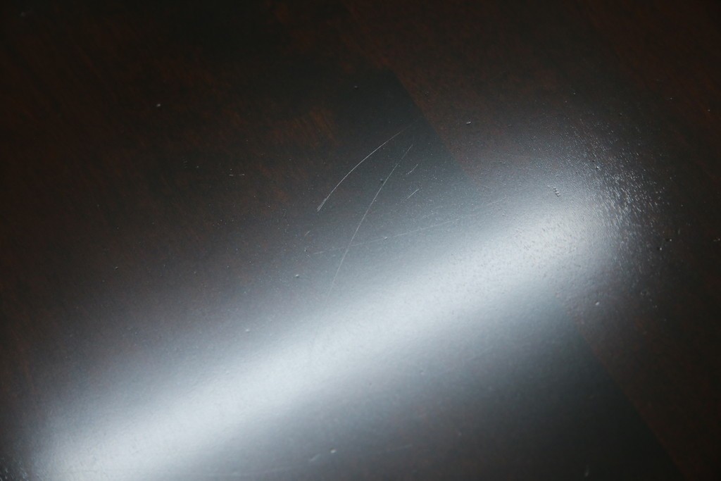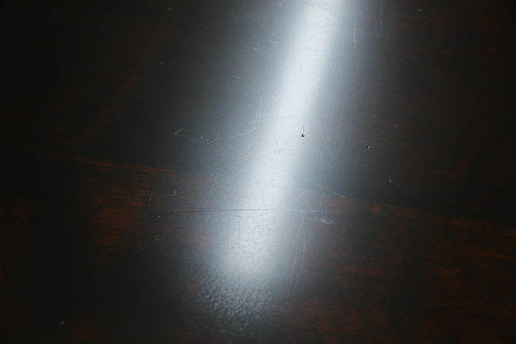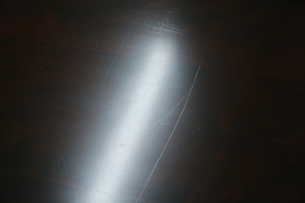 ・天板は当店でクリア塗装を施しております。小キズ等が目立ちにくく、耐水性と耐久性に優れたお手入れがしやすい仕上げです。