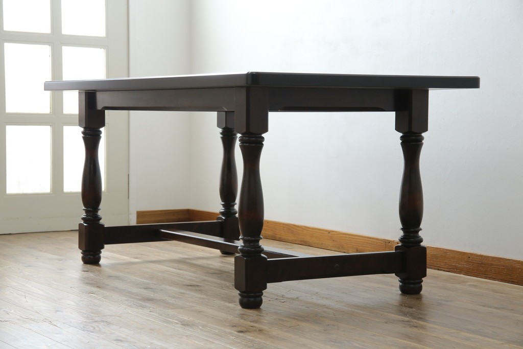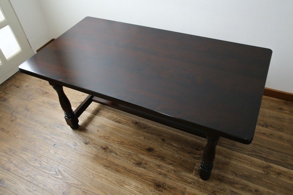 中古 北海道民芸家具 深みのある色合いとクラシカルな雰囲気が魅力的なダイニングテーブル(R-083927)