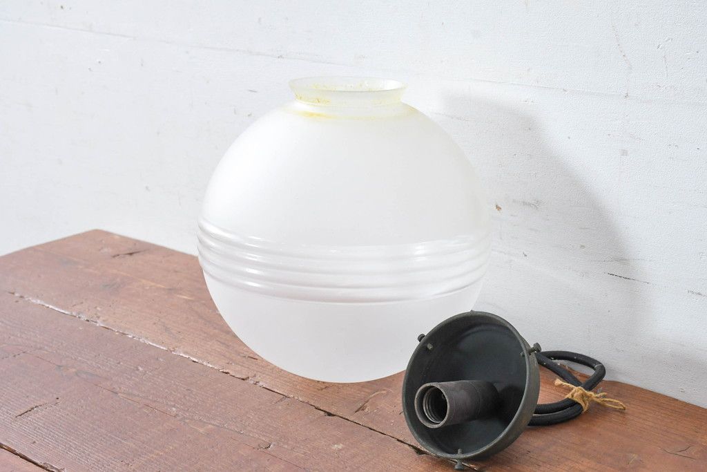 和製アンティーク 丸みあるフォルムで中央のラインが珍しいペンダントライト(天井照明、吊り下げ照明、シェード、電笠)(R-083942)です。