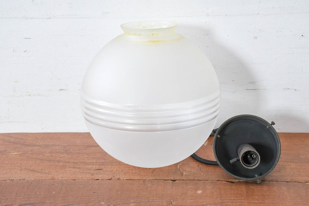 和製アンティーク 丸みあるフォルムで中央のラインが珍しいペンダントライト(天井照明、吊り下げ照明、シェード、電笠)(R-083942)