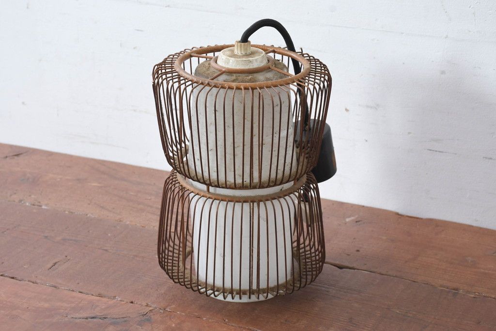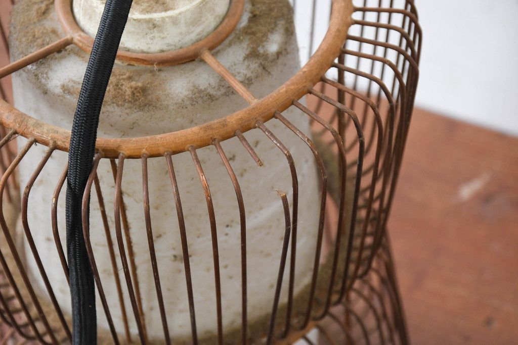 和製ビンテージ 東芝電材 涼し気なデザインが素敵な竹細工のペンダントライト(天井照明、吊り下げ照明、ヴィンテージ)(R-083951)
