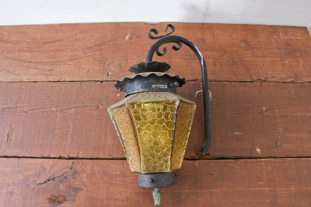 照明・ランプ> ウォールライト > 和製ビンテージ 日立(HITACHI)製 レトロでおしゃれなアンバーガラスのウォールランプ(ブラケットライト、壁掛け照明、壁付け照明、屋外照明、ヴィンテージ)(R-083953)