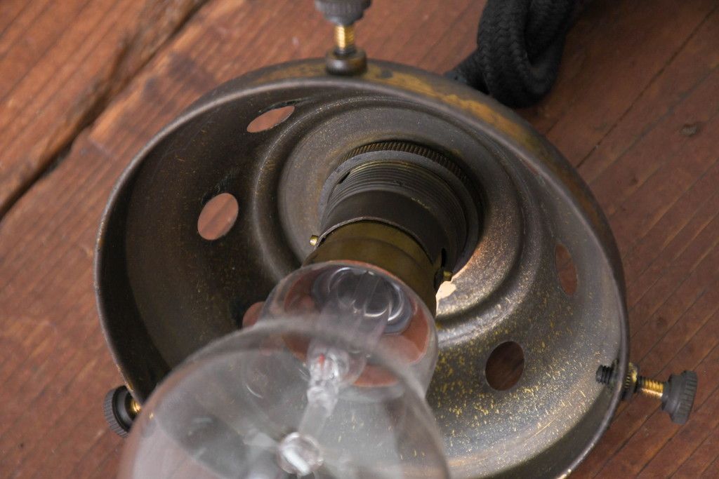 リペアの際に引っ掛けシーリング式に仕上げます。 コードと取付具の色は電笠の形状に合わせた当店指定のものとなります。 コードの長さは商品により異なります(400mm前後)。コードと取付具の色や長さにご希望がございましたら、お気軽にご相談ください。