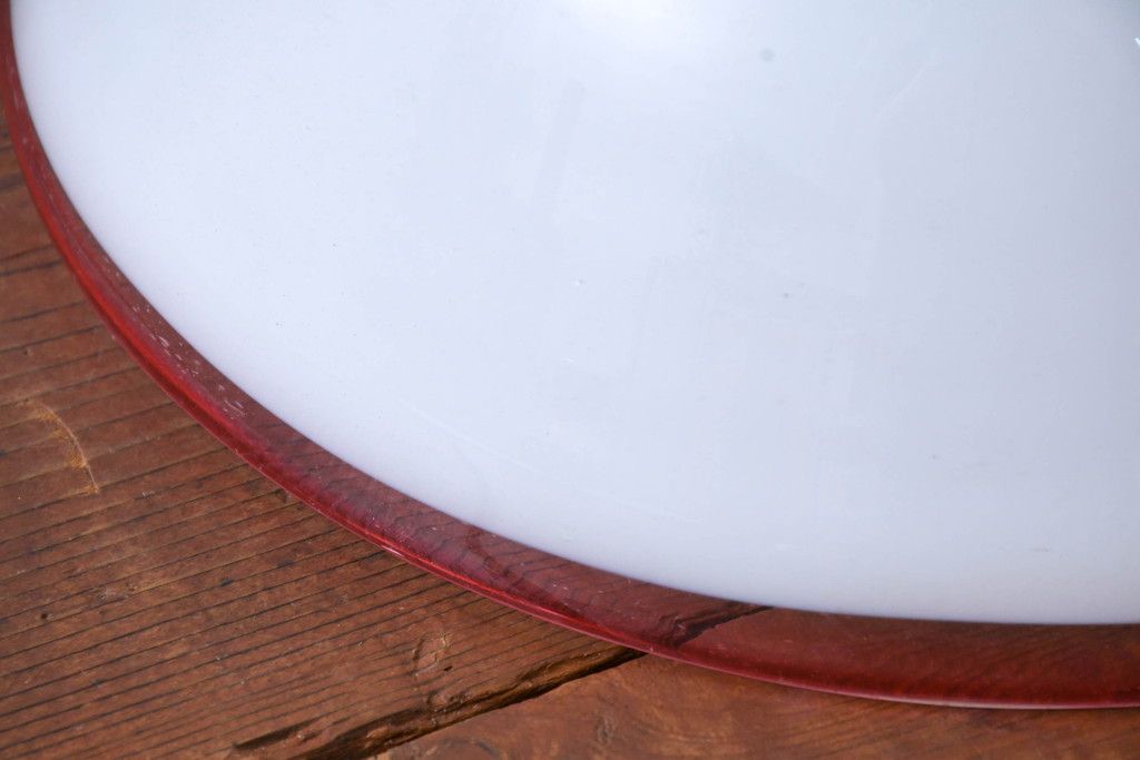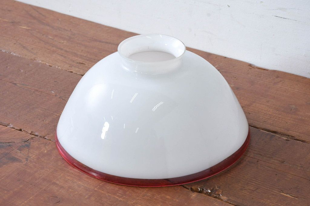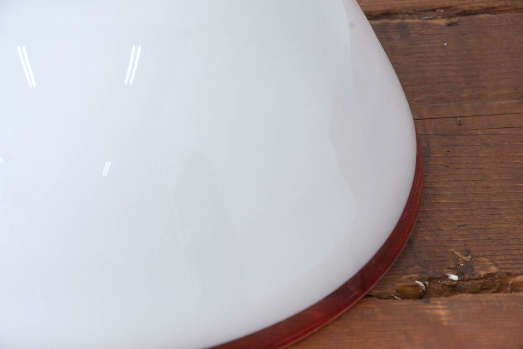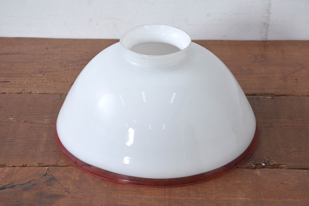 照明・ランプ> ペンダントライト > 《引っ掛けシーリング式ペンダントライト加工費込み》 和製アンティーク 白×赤のアクセントがレトロで可愛らしいぺンダントライト(天井照明カバー、吊り下げ照明、シェード、電笠)(R-083959)