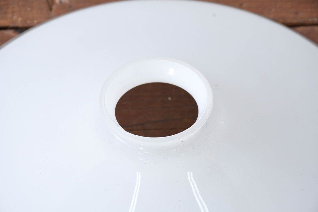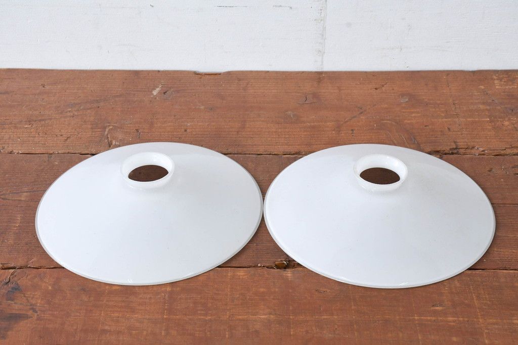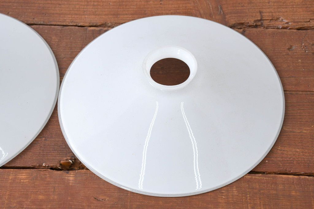 照明・ランプ> ペンダントライト > 《引っ掛けシーリング式ペンダントライト加工費込み》 ヨーロッパビンテージ 乳白色のシンプルな電笠2個セット(ペンダントライト、平笠、天井照明、吊り下げ照明、シェード、ヴィンテージ)(R-083960)