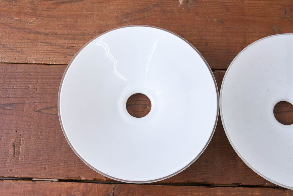 《引っ掛けシーリング式ペンダントライト加工費込み》 ヨーロッパビンテージ 乳白色のシンプルな電笠2個セット(ペンダントライト、平笠、天井照明、吊り下げ照明、シェード、ヴィンテージ)(R-083960)です。