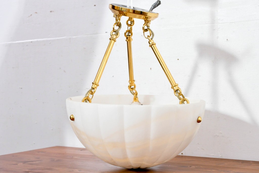 天然石のマーブルアラバスターを用いた、柔らかな質感が魅力の吊り下げ照明です。