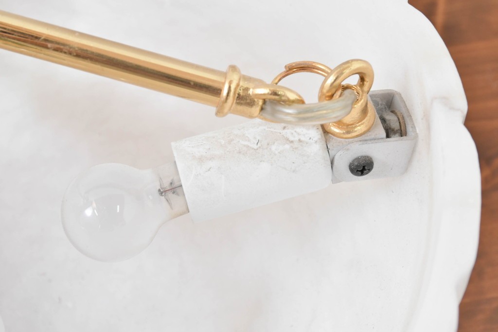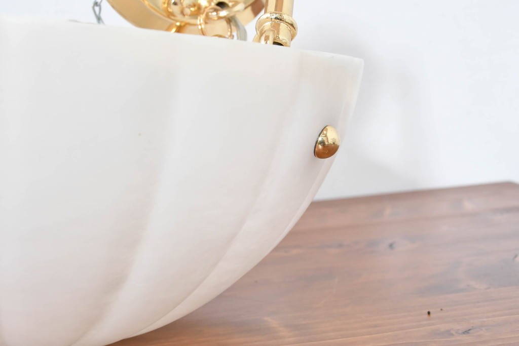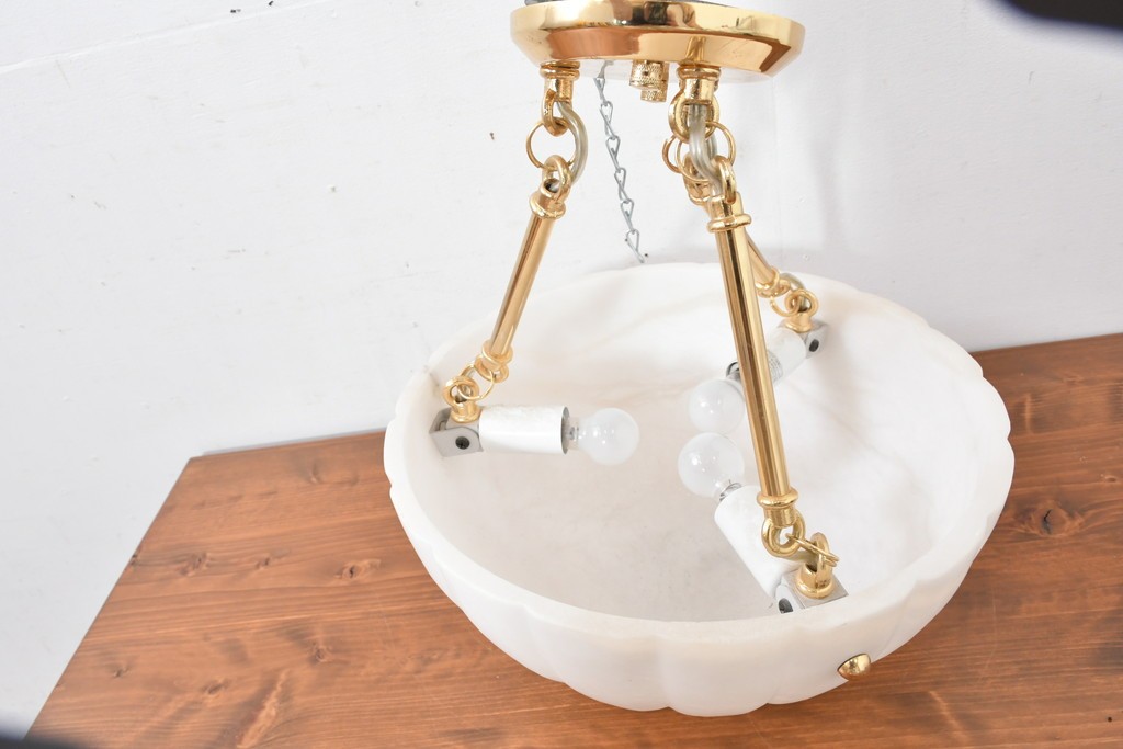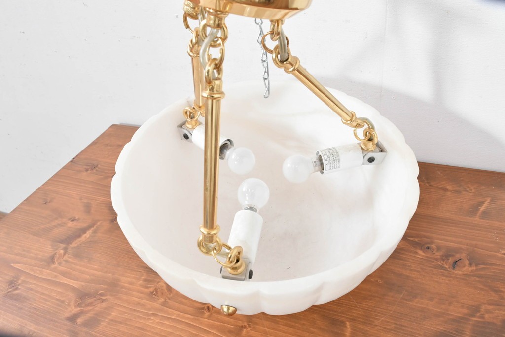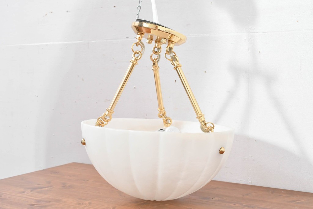 ラフジュ工房> 照明・ランプ > 中古 業務用高級輸入品 本物の天然石(マーブルアラバスター) シェルライン装飾のエレガントなハンギングライト 定価約30万円 (R-083993)